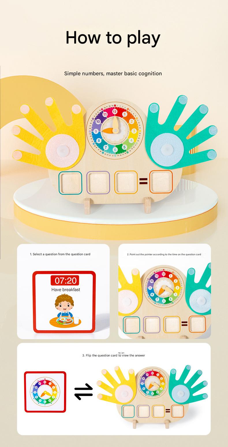 أدوات تعليمية خشبية للأطفال على شكل ساعةوضفدع