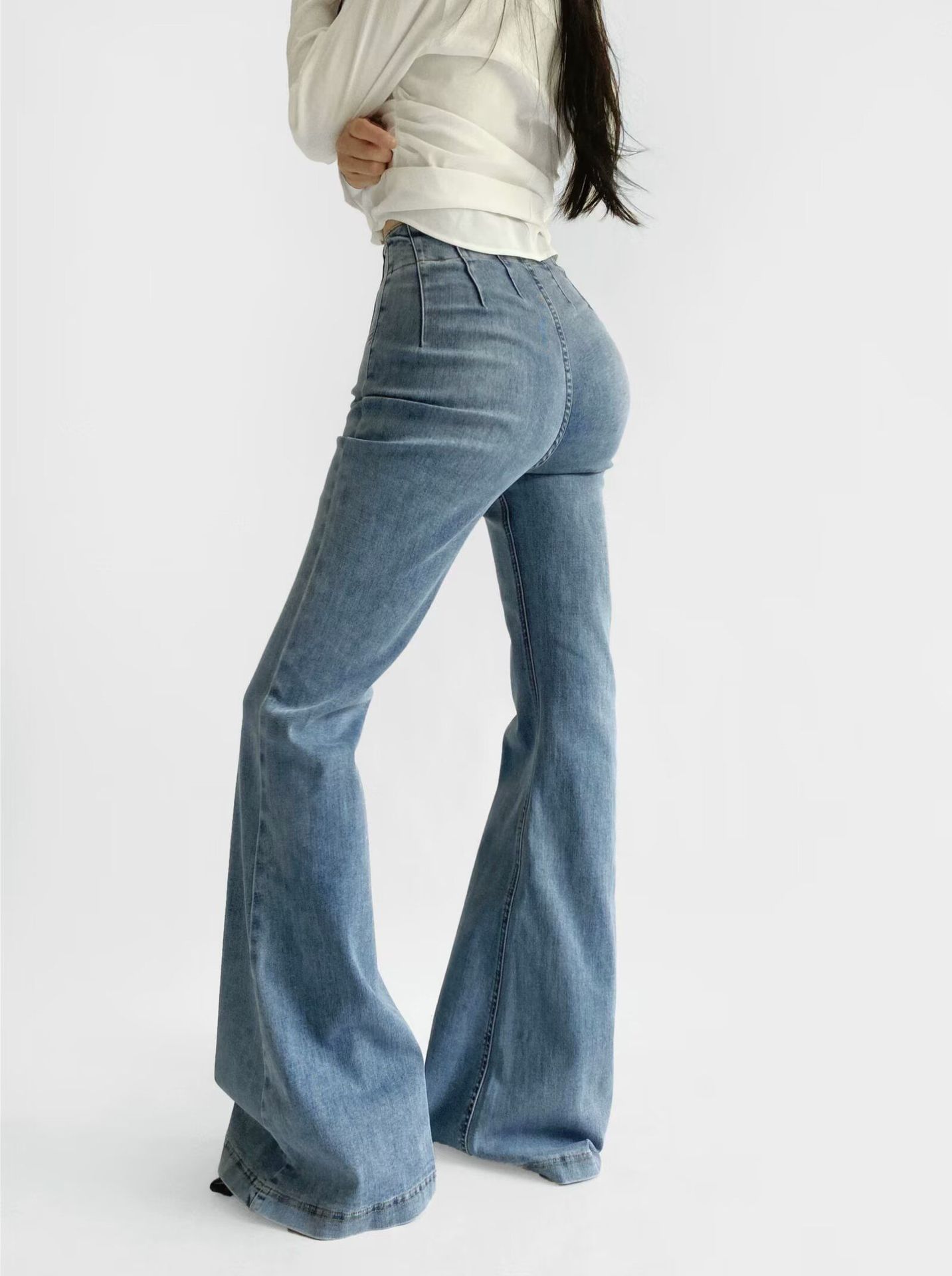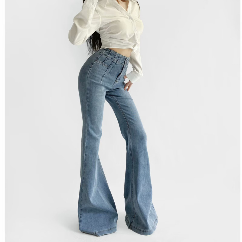 بنطلون جينز نسائي ضيق وخصر مرتفع
