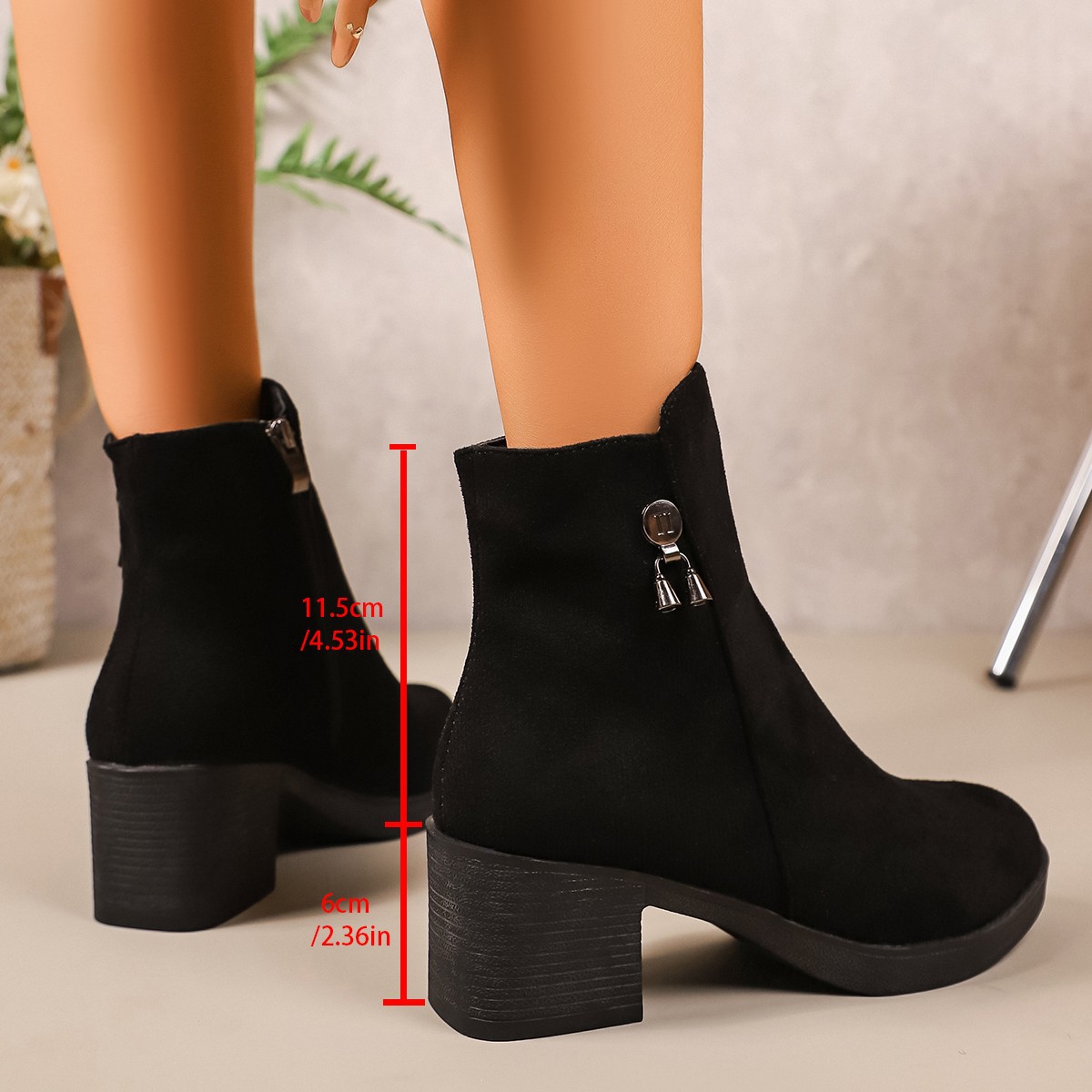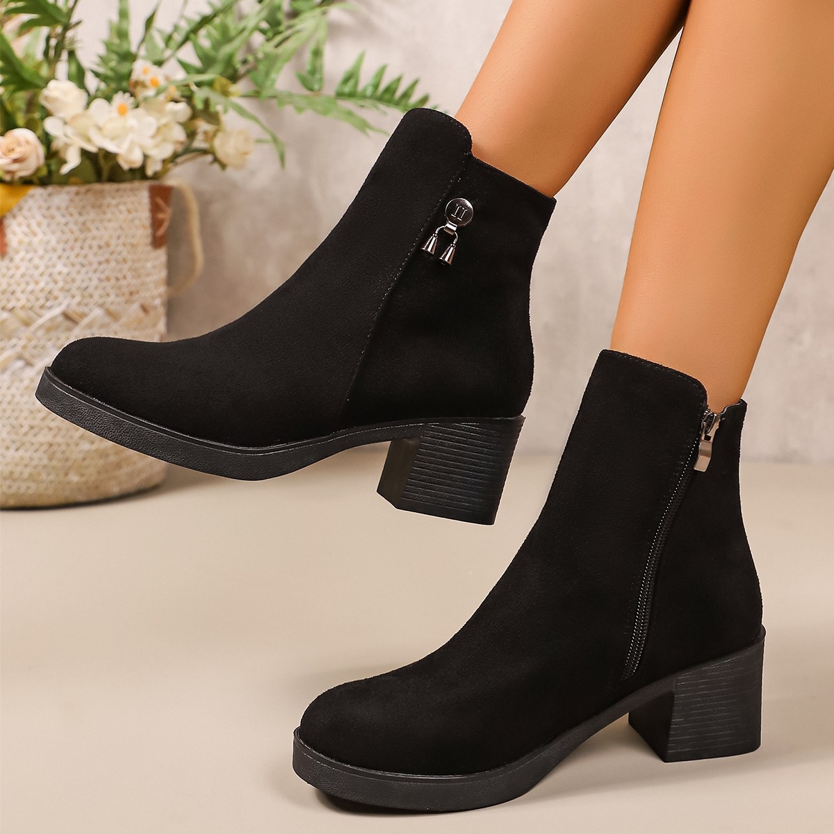 حذاء نسائي مرفوع بكعب سميك وسحاب جانبي