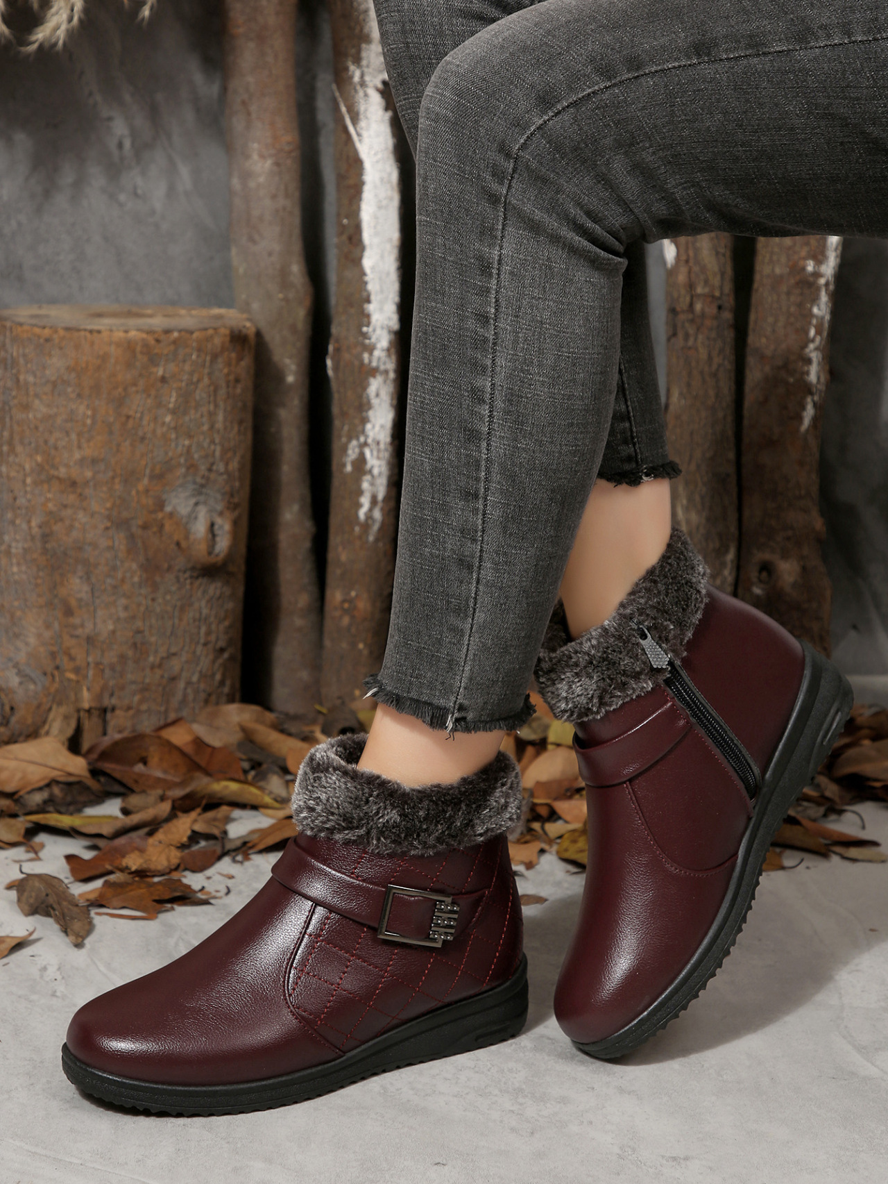 حذاء نسائي مبطنة بالصوف