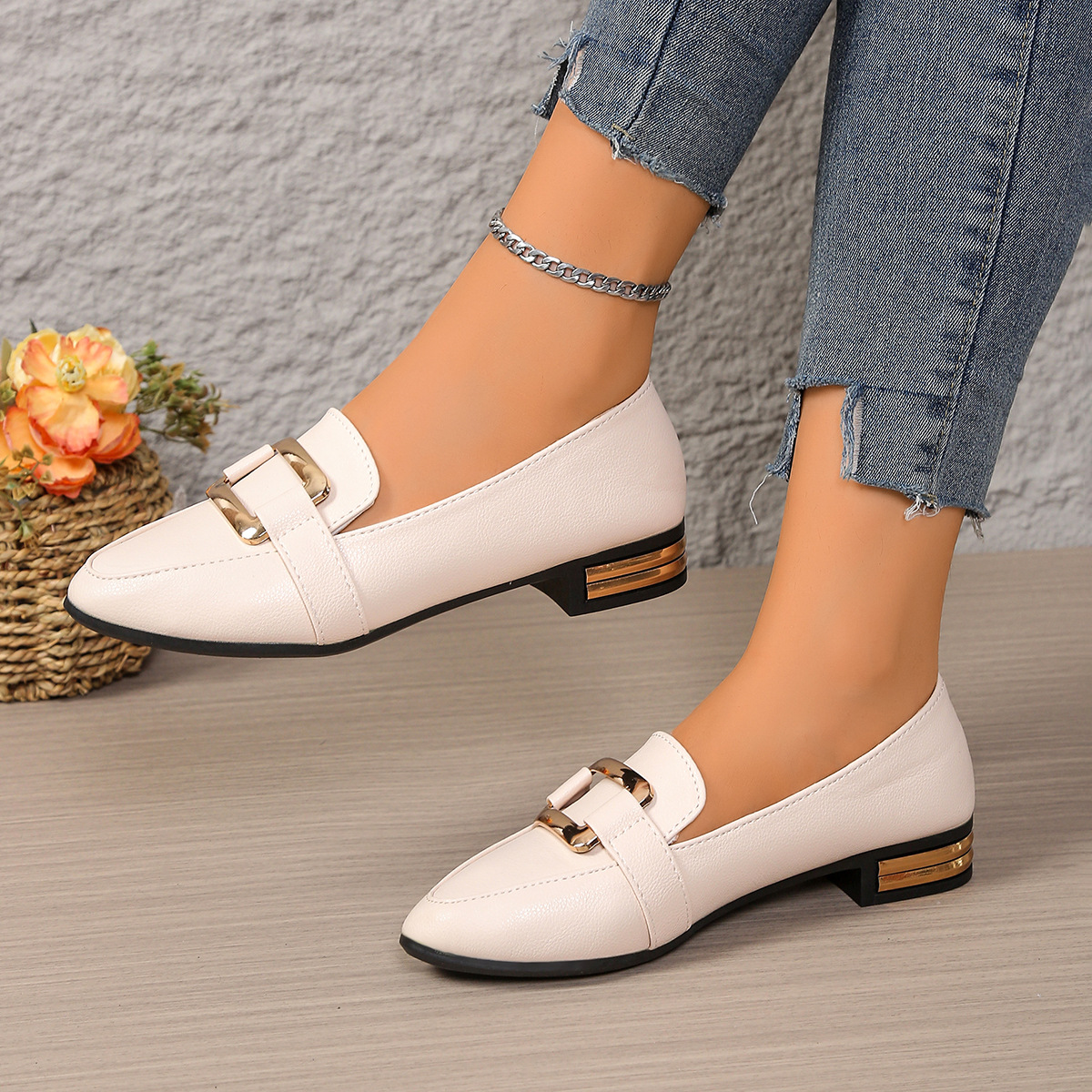 حذاء نسائي مدبدب الاصابع مزين بعقده ذهبيه