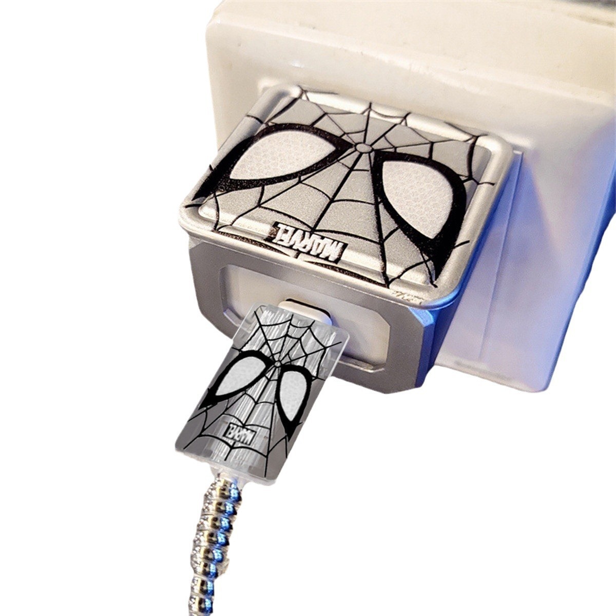 كفر لحماية الشاحن بنمط سبيدرمان متوافق مع كابل شحنiPhone" 15" 14 وiPad 18-20