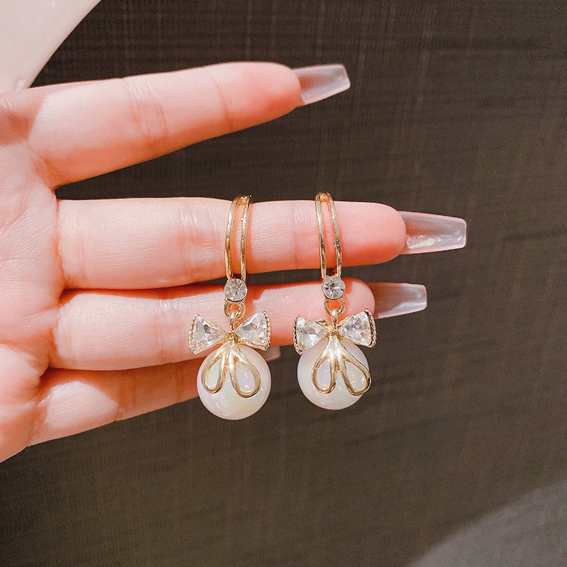 اقراط نسائية بنمط فيونكا مزينه بلؤلؤ