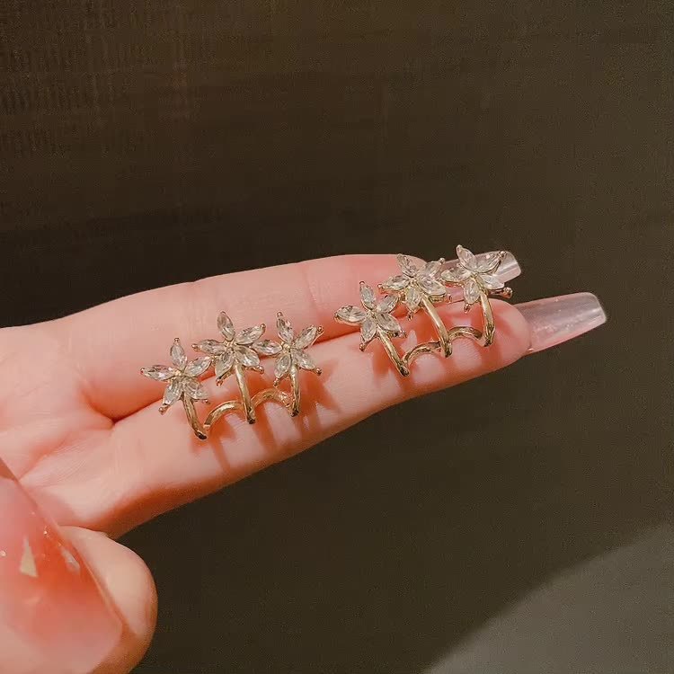 اقراط نسائي مزينه بثلاثه زهور ذهبيه
