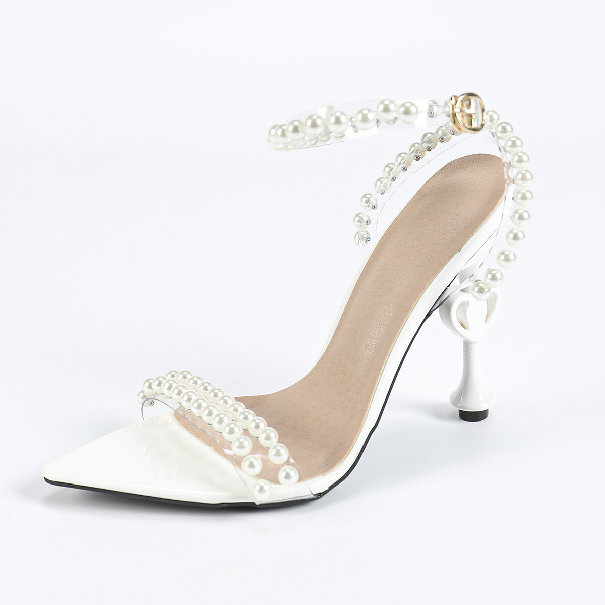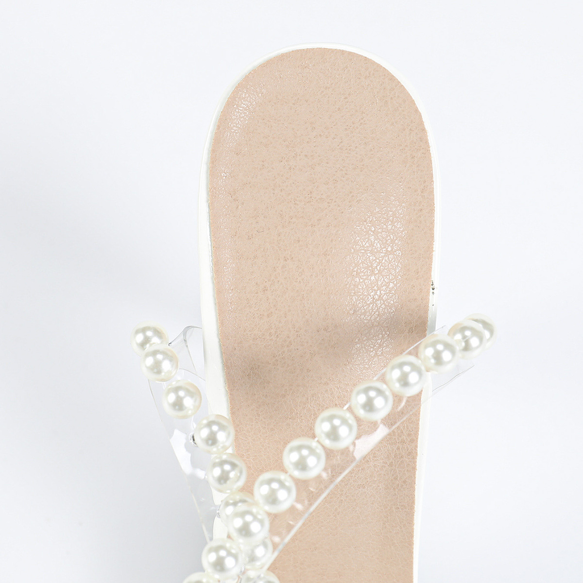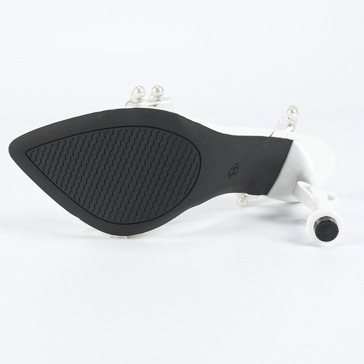 كعب نسائي ابيض ناعم مزين بلؤلؤ