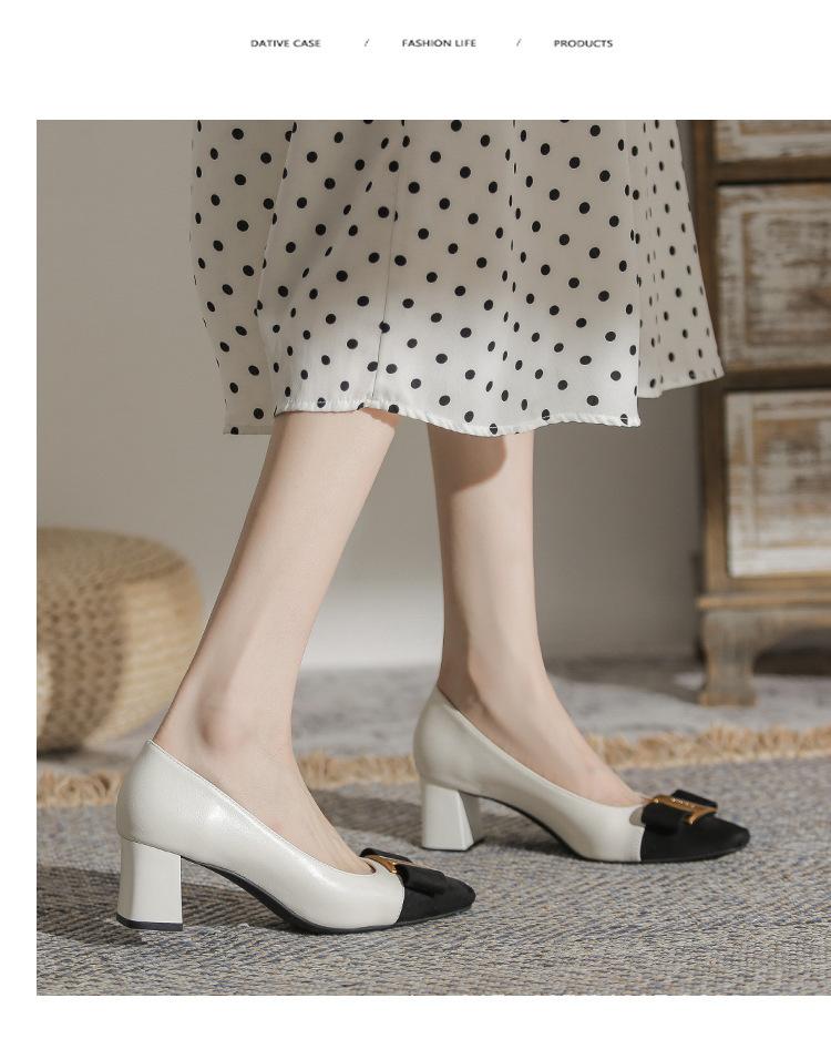 حذاء نسائي بكعب مربع متوسط الطول