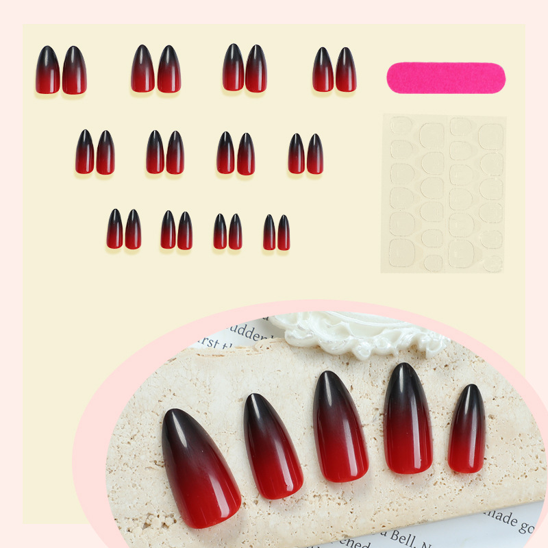 اظافر صناعيه باللون الأحمر المتدرج لوزي الشكل