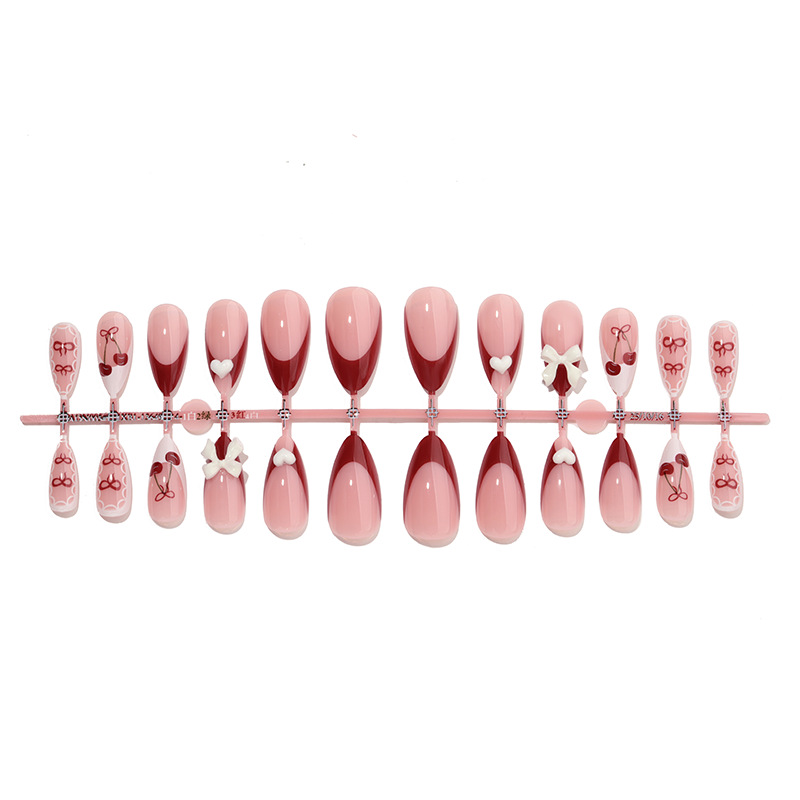 اظافر صناعية باللونين الأحمر والأبيض باطراف لوزيه