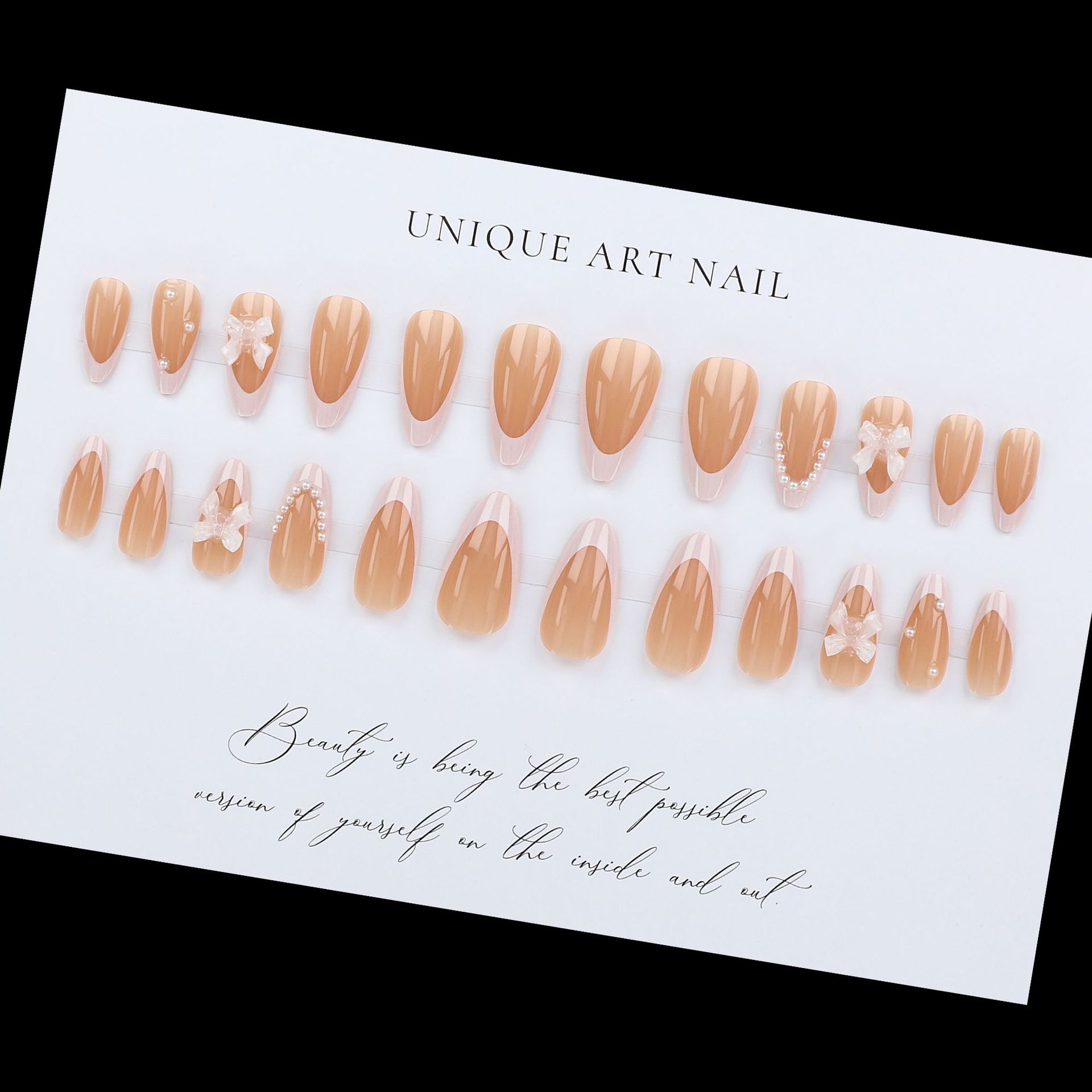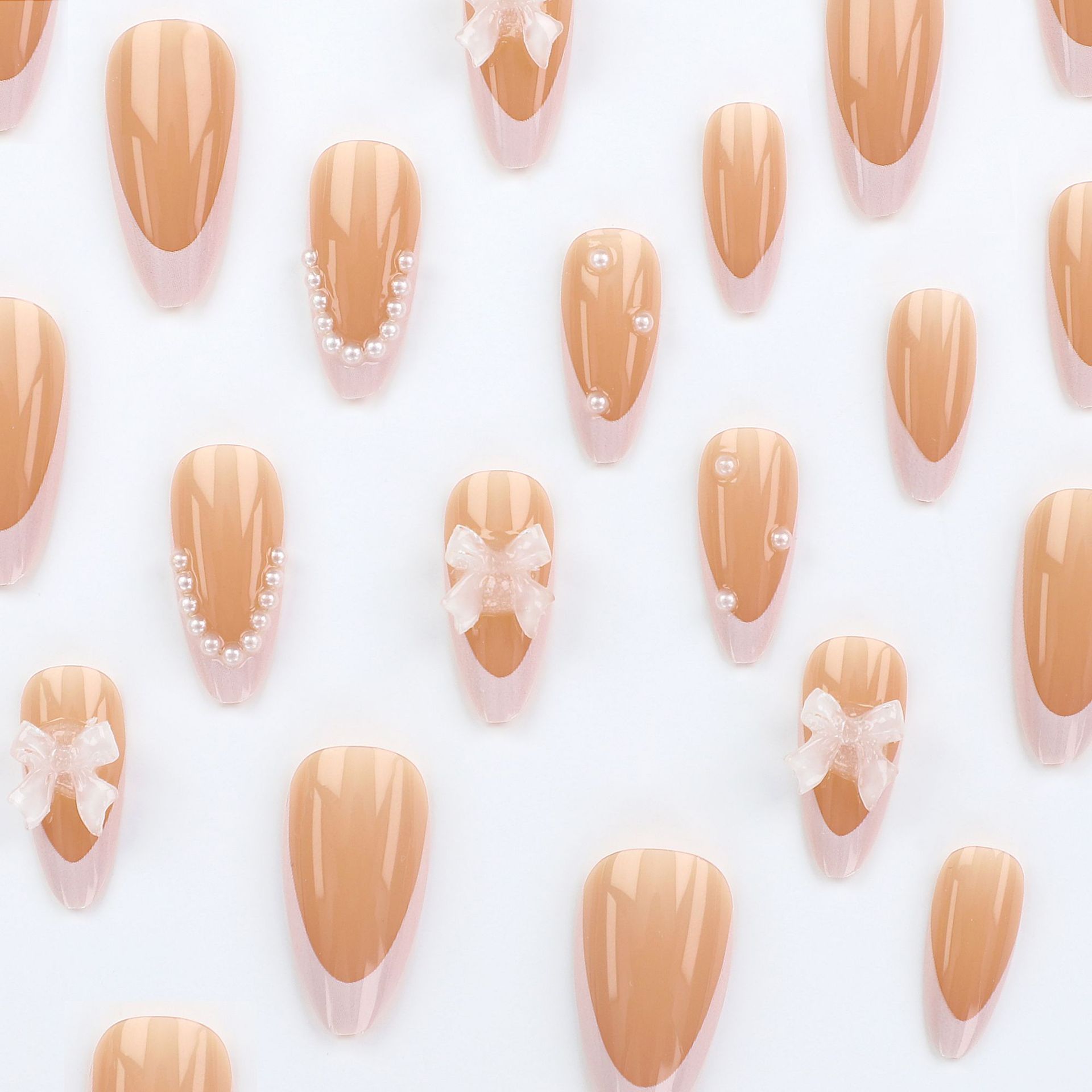اظافر صناعية مزينه بلؤلؤ ورسومات مكونة من 24 قطعة