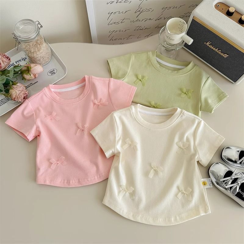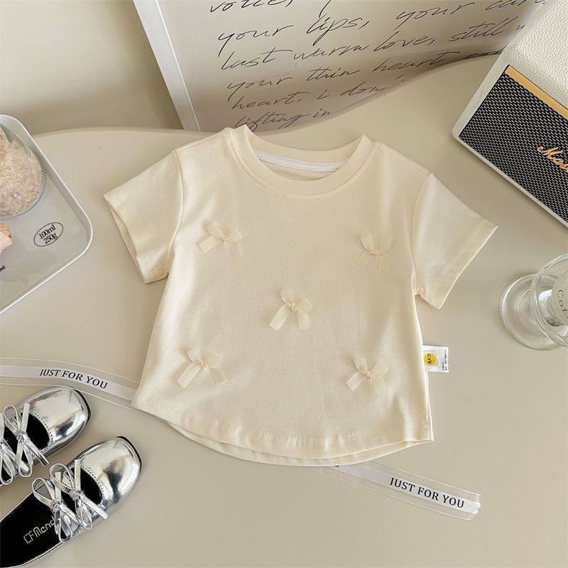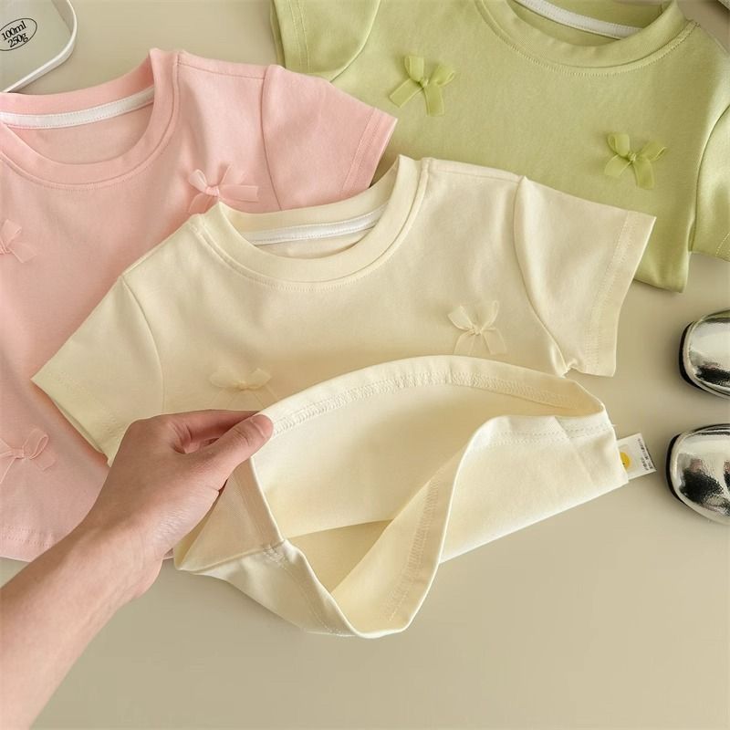 بلوزه بناتي ذات رقبة دائرية وأكمام قصيرة من القطن