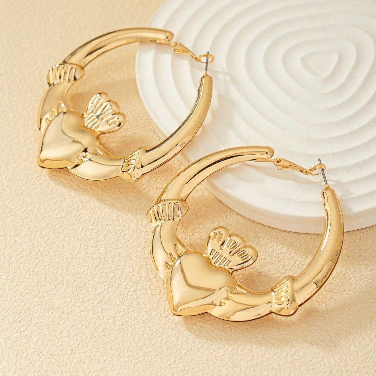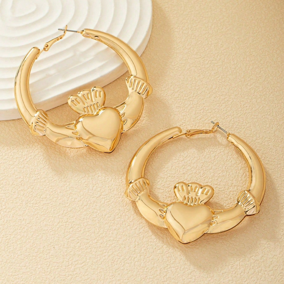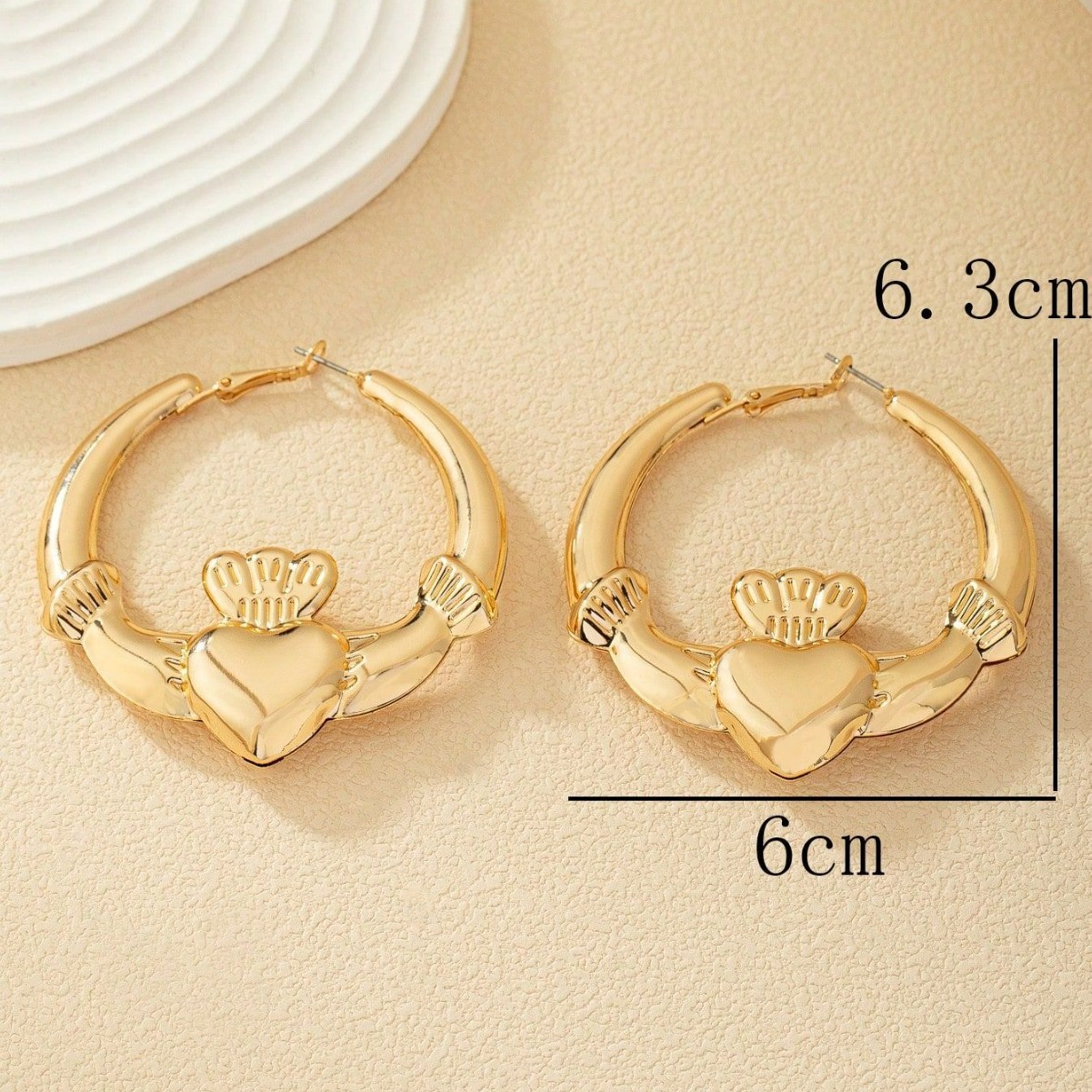 اقراط نسائي ذهبي دائري مزينه بقلوب