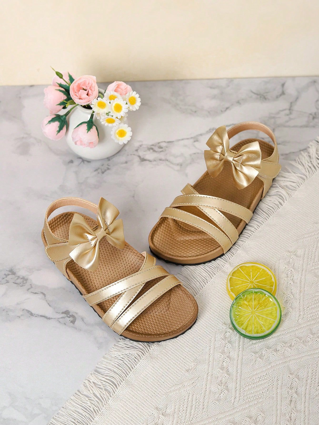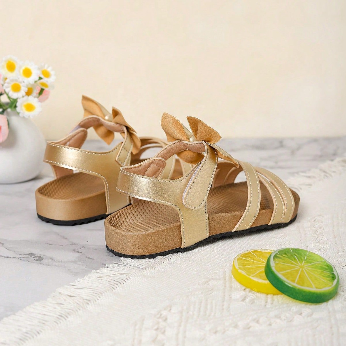 حذاء بناتي ذهبي مزين بفيونكا