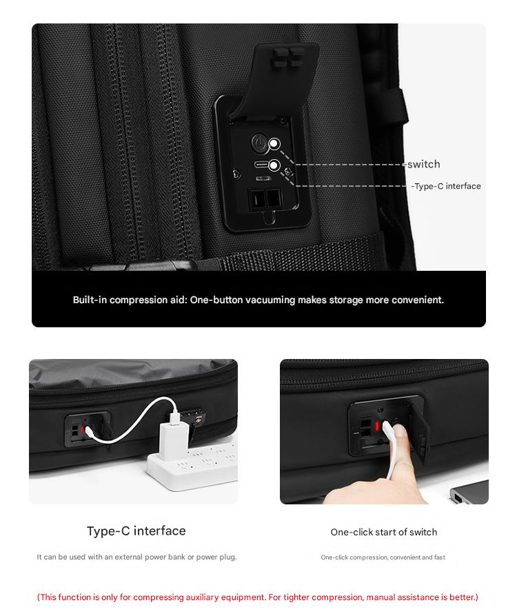 تحتوي الحقيبة على منفذ شحن خارجي لتسهيل شحن هاتفك أثناء التنقل، كما أنها مزوّدة بميزة توسيع السعة الخلفية من 15 سم إلى 20 سم، مما يجعلها عملية للرحلات أو الاستخدام اليومي.