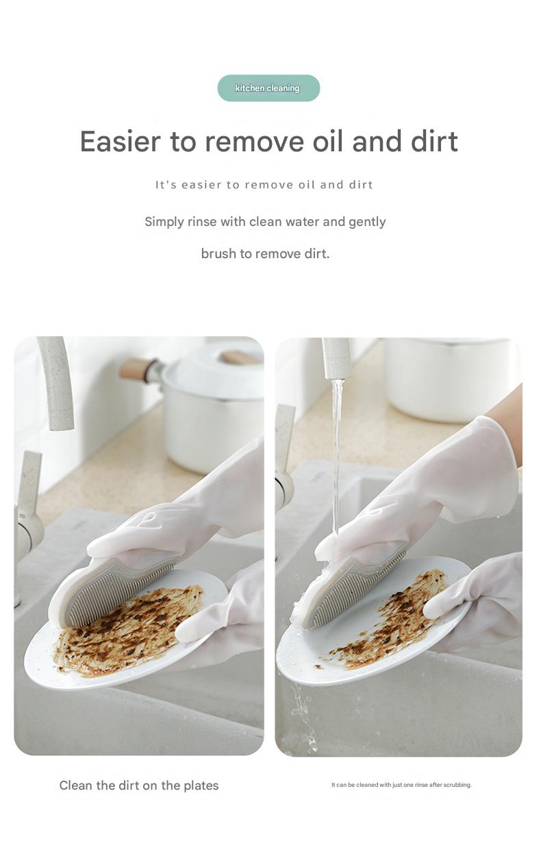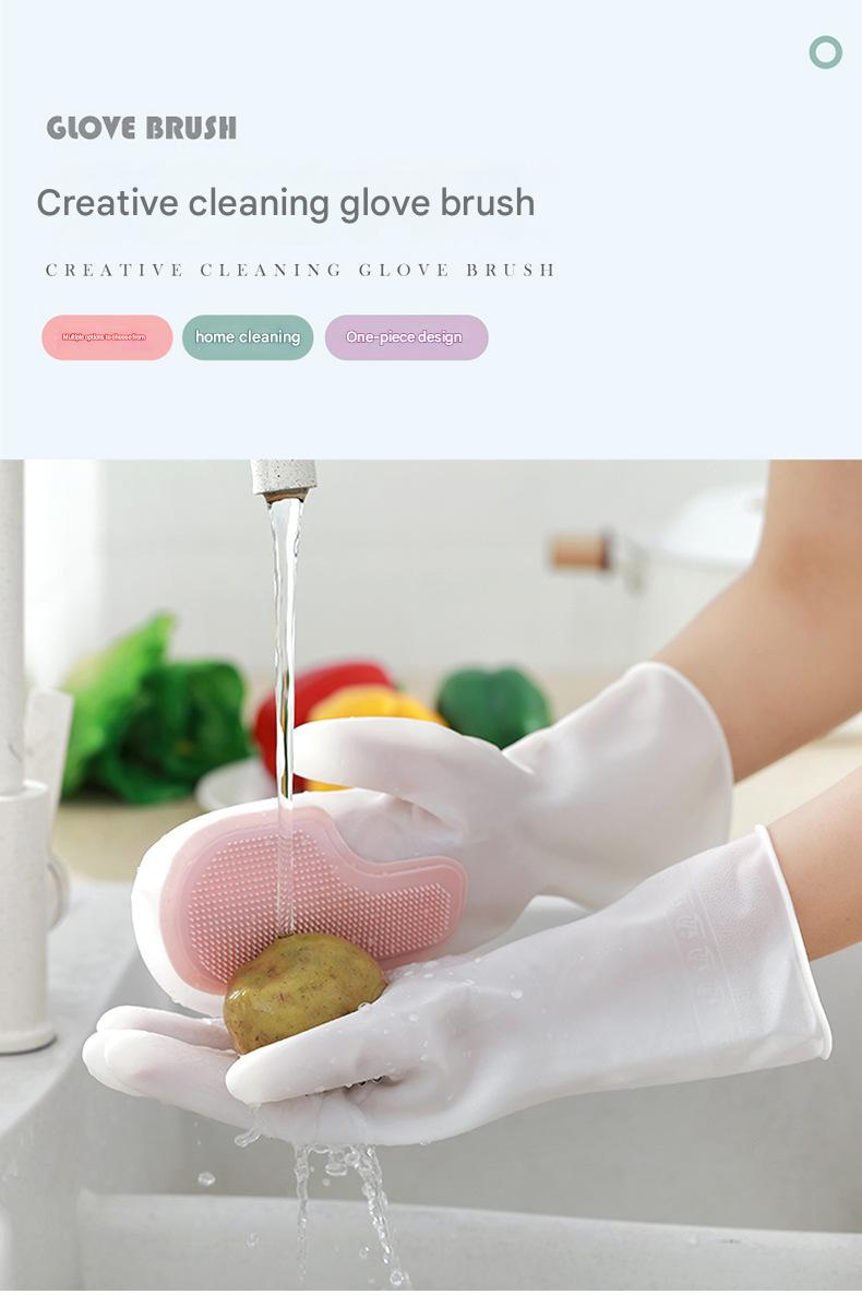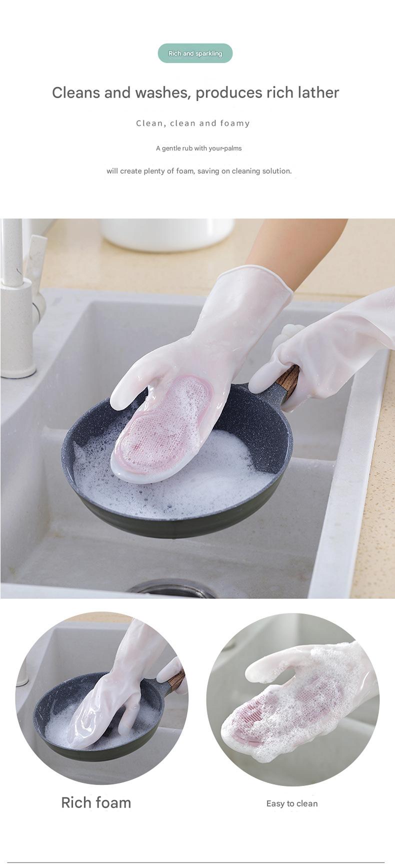 قفازات غسيل بلاستيكية مع ليفة تنظيف مدمجة