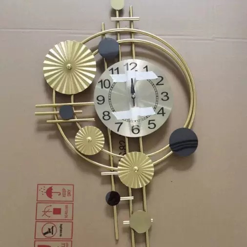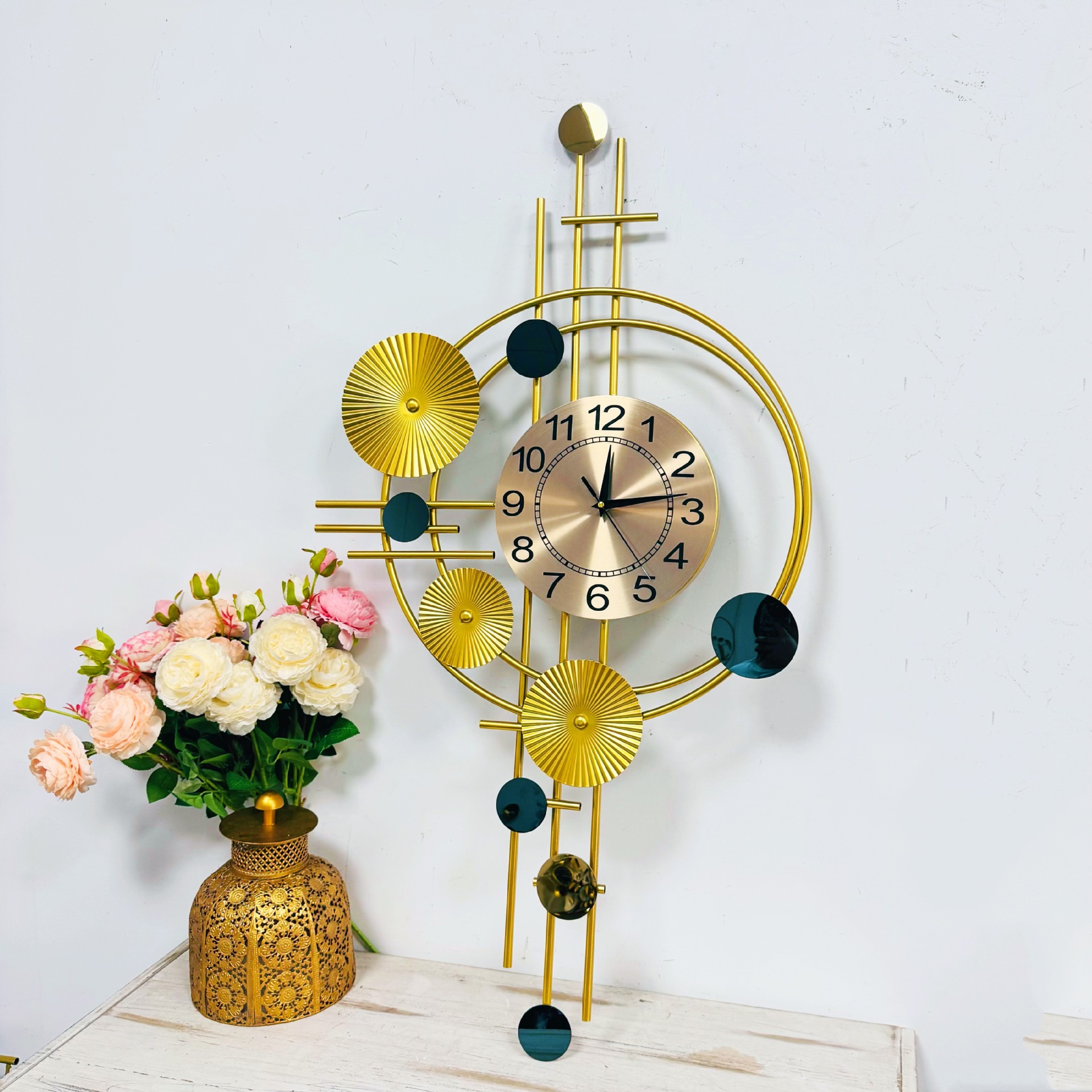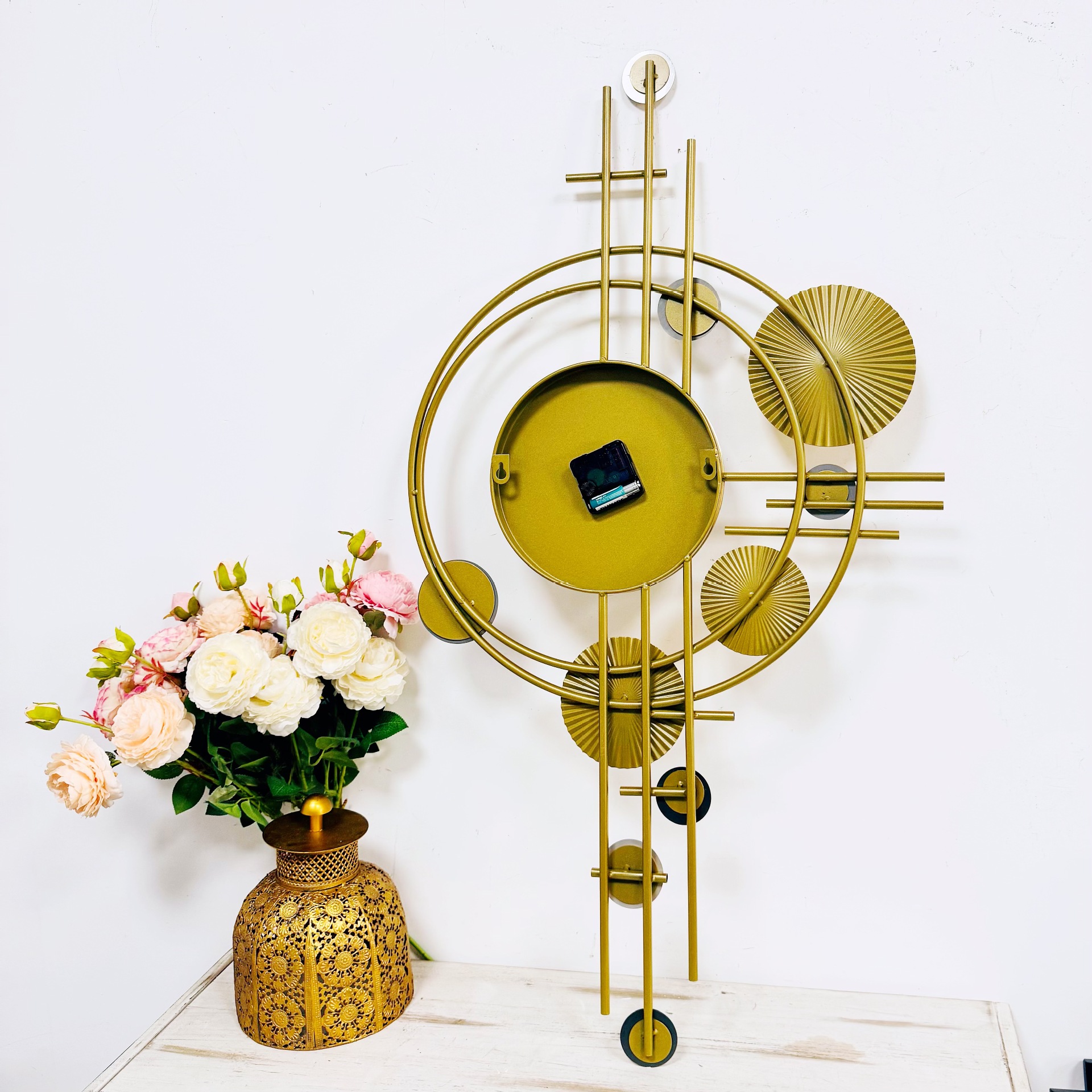 ساعة حائط ذهبية بتصميم خطوط هندسية ودوائر بارزة