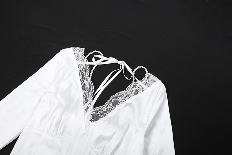 فستان نسائي طويل ناعم مزين بالدانتيل
