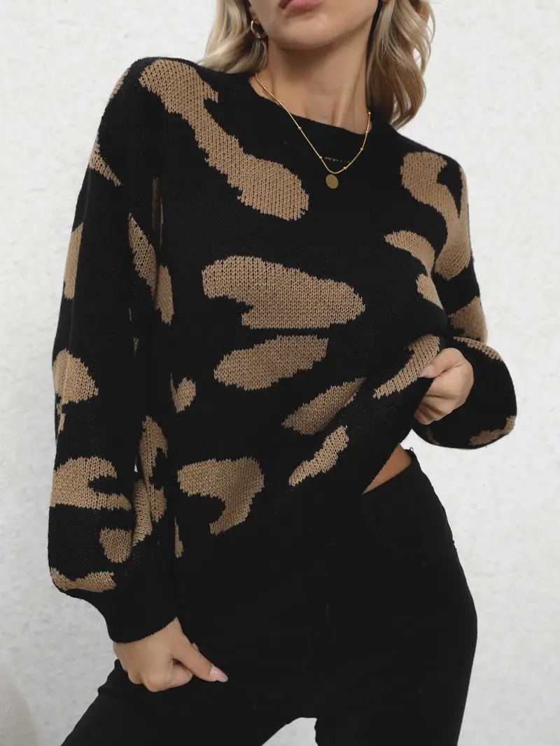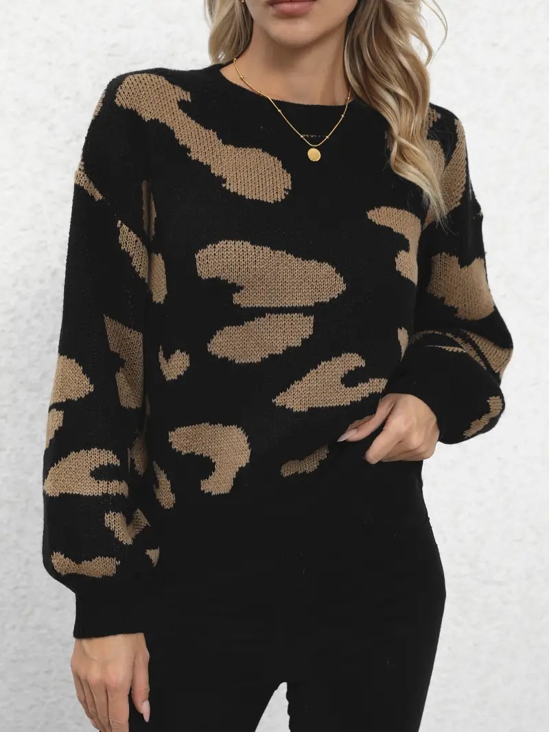 بلوزه شتويه نسائية محبوكة برقبة دائرية