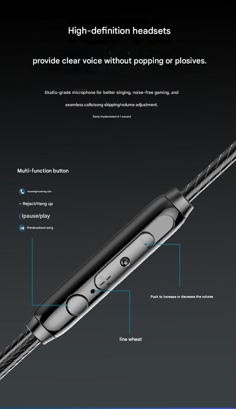 سماعات أذن سلكية بميكروفون مدمج، صوت جهير عميق