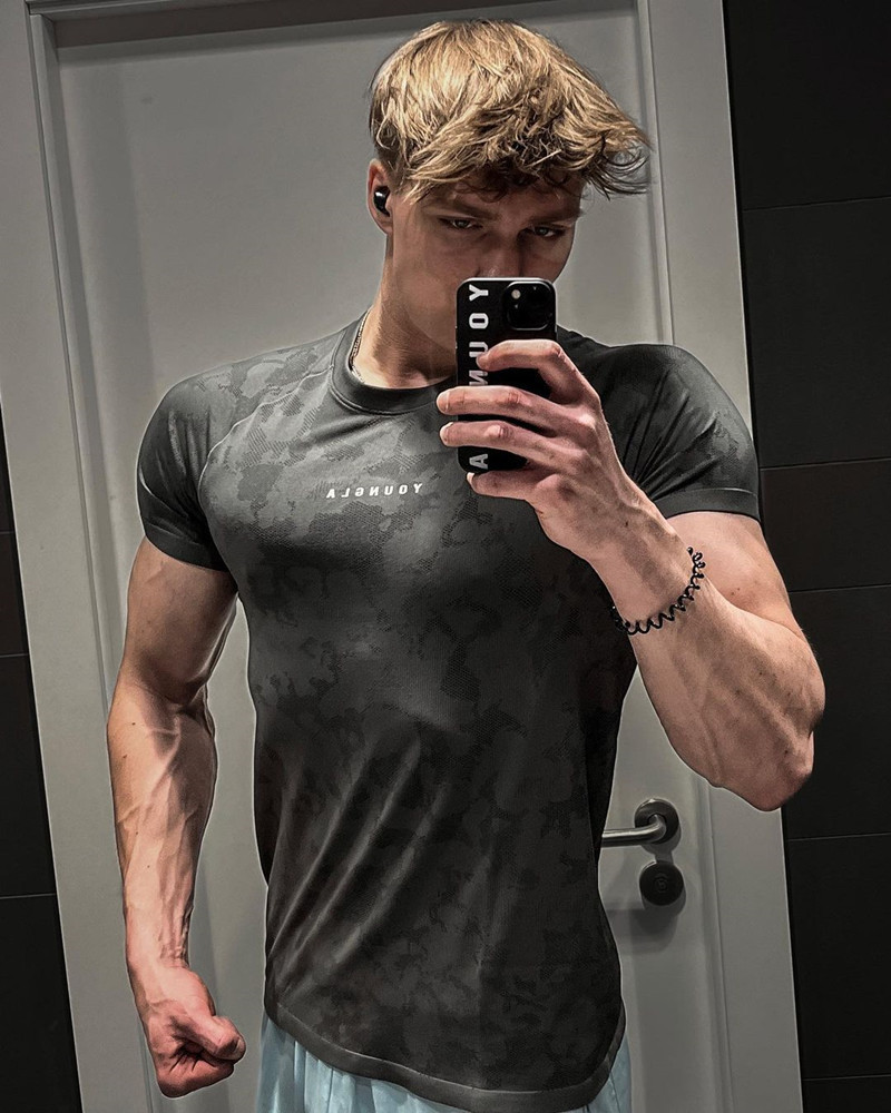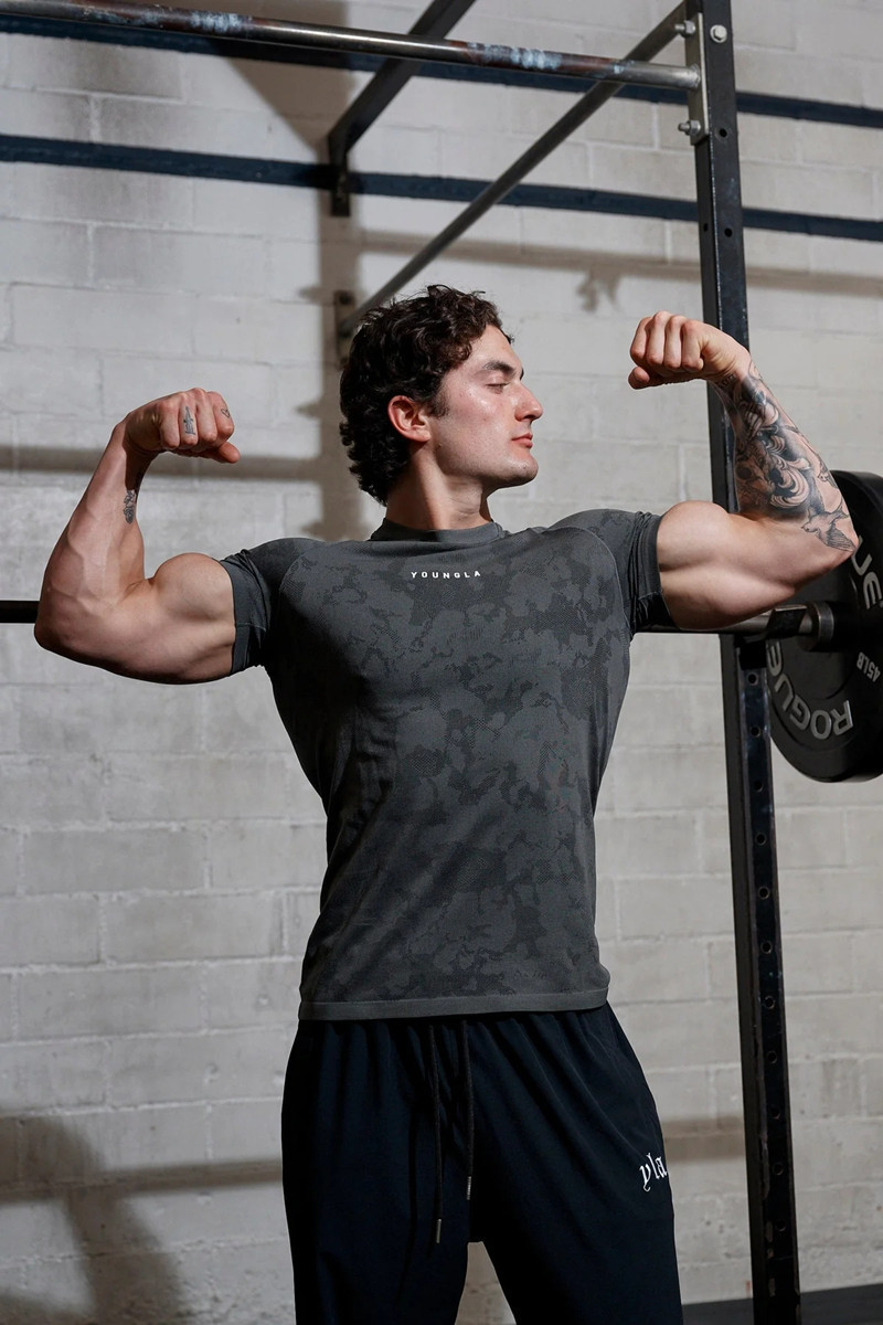 تيشيرت رياضي عالي المرونة بأكمام قصيرة