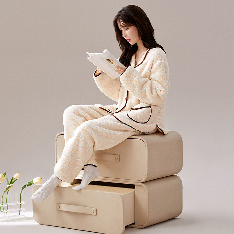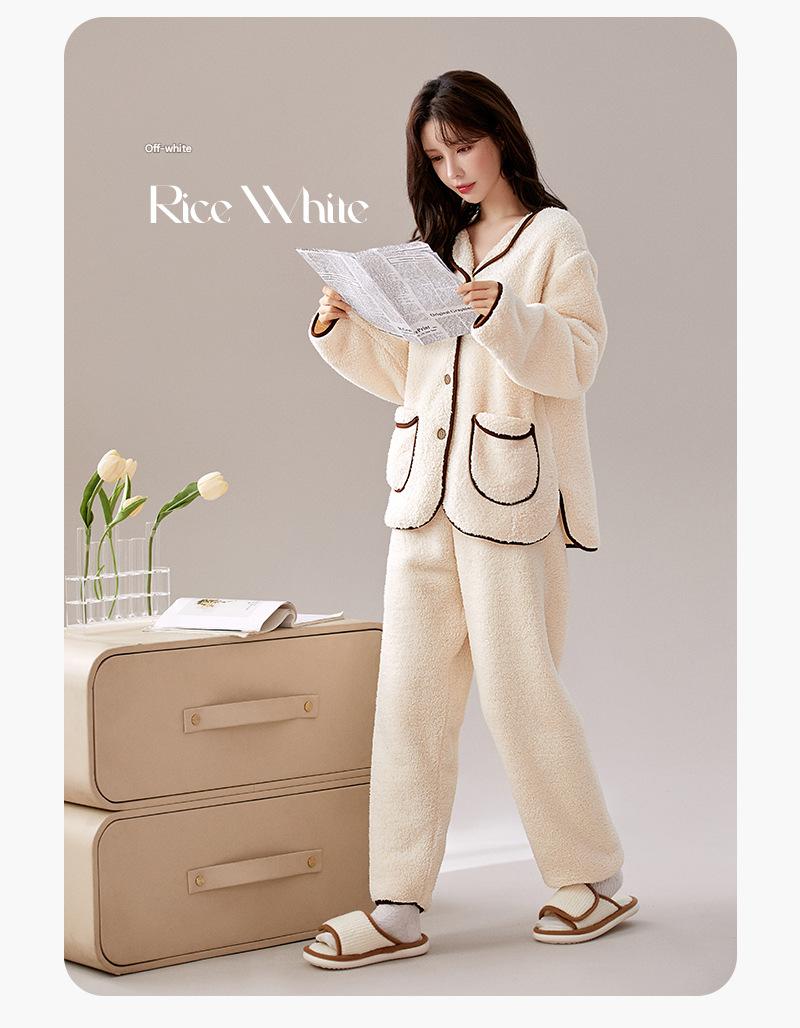 طقم بيجاما نسائي دافئ مكون من قطعتين