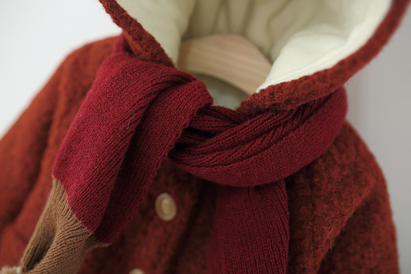 معطف أطفال سميك مع غطاء راس ووشاح للجنسين