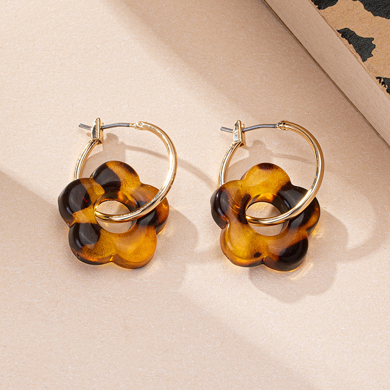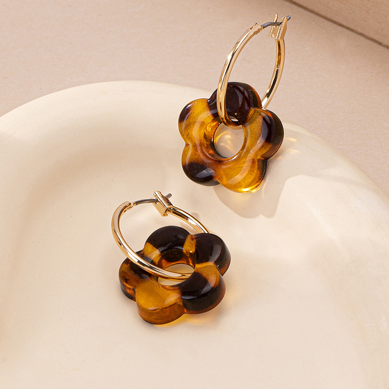 اقراط نسائيه بنيه اللون على شكل زهره