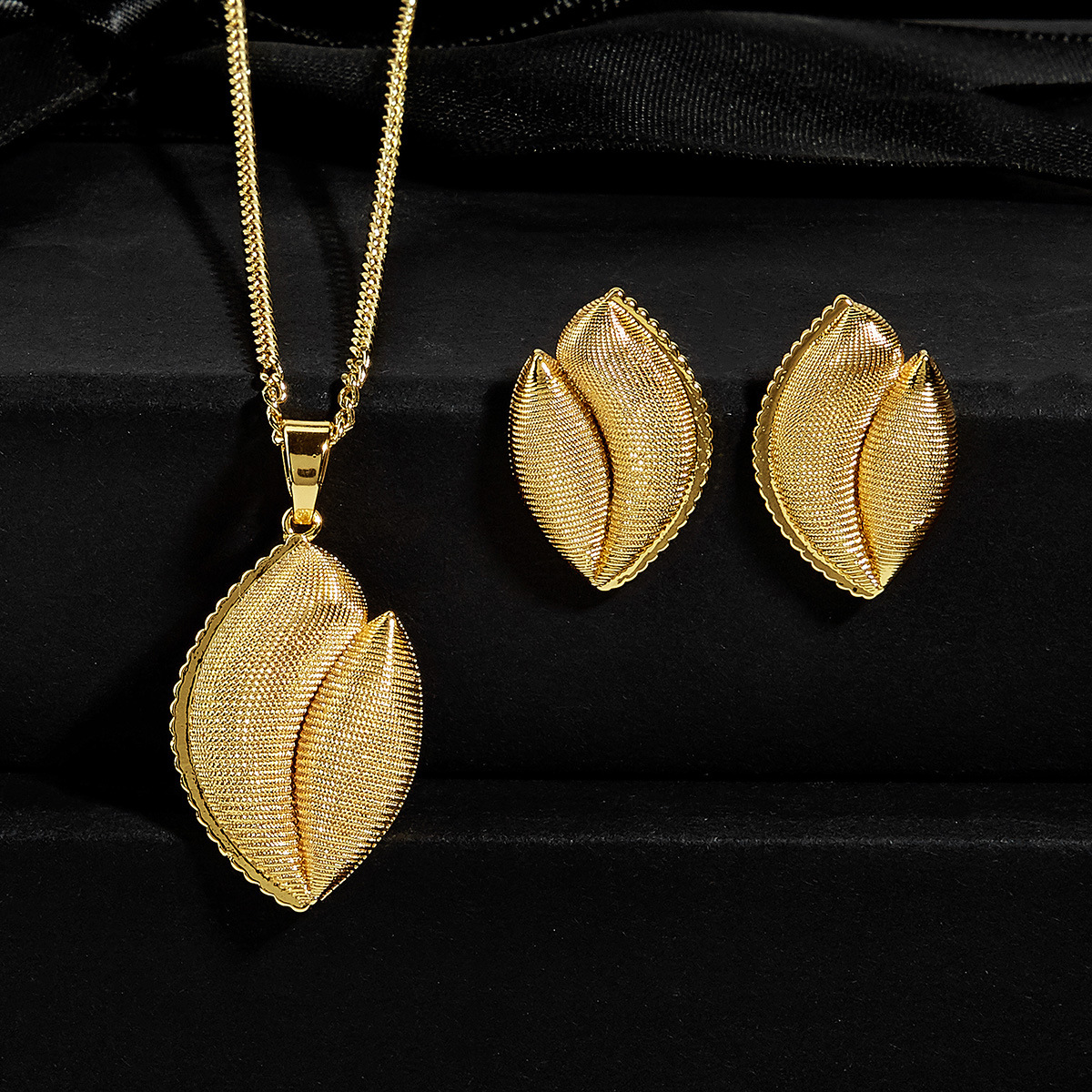 طقم نسائي ذهبي على شكل صدفه