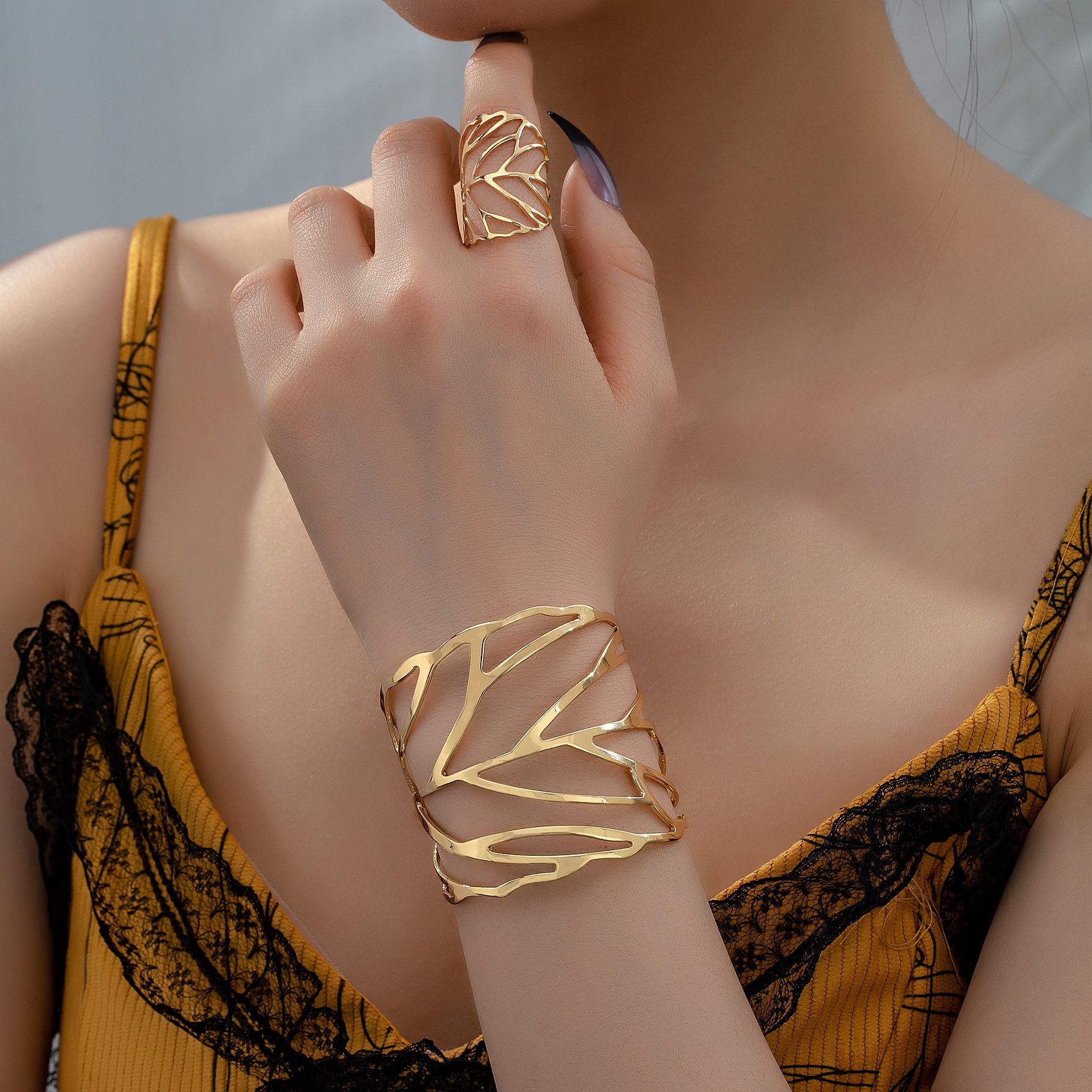 طقم نسائي ناعم يتكون من اساوره وخاتم