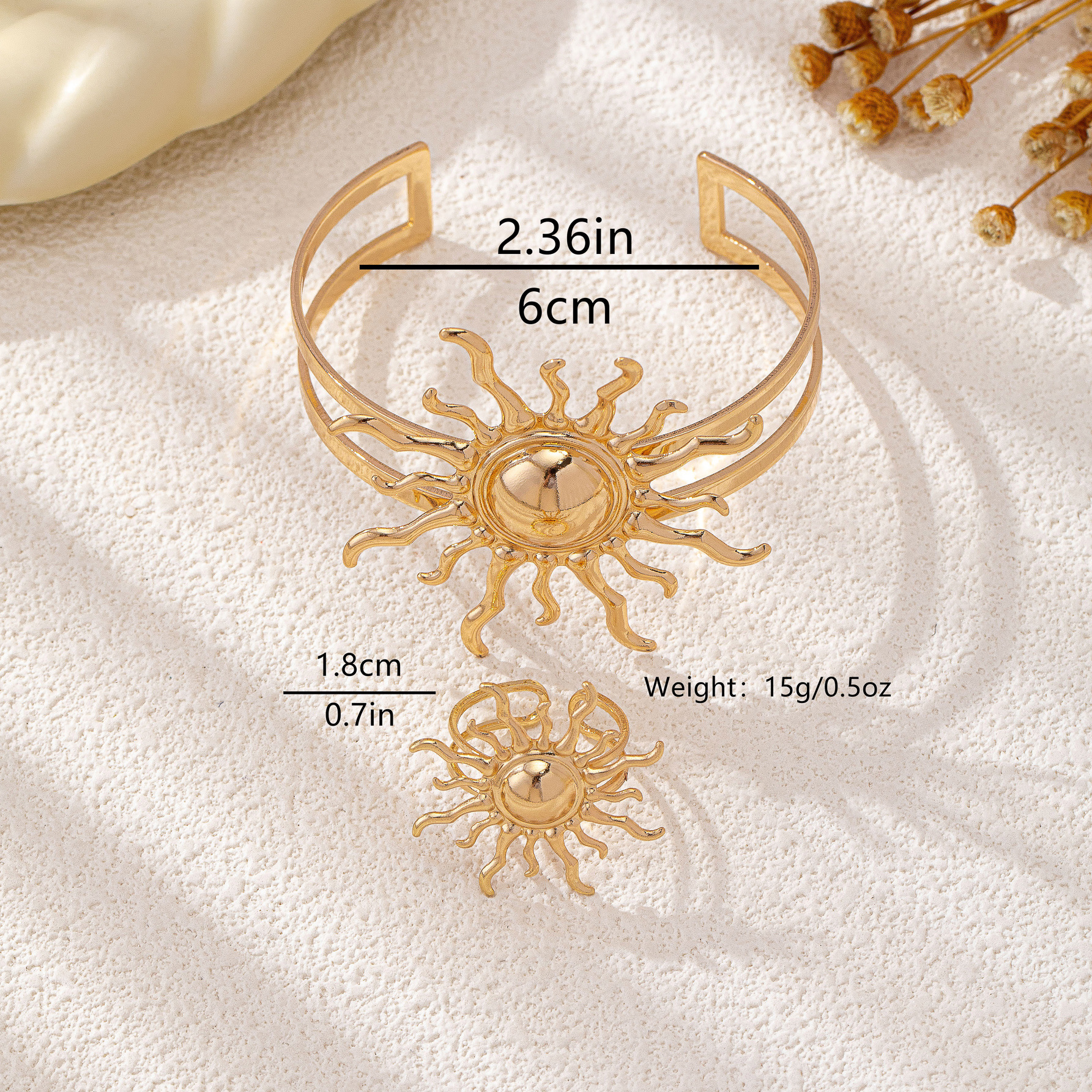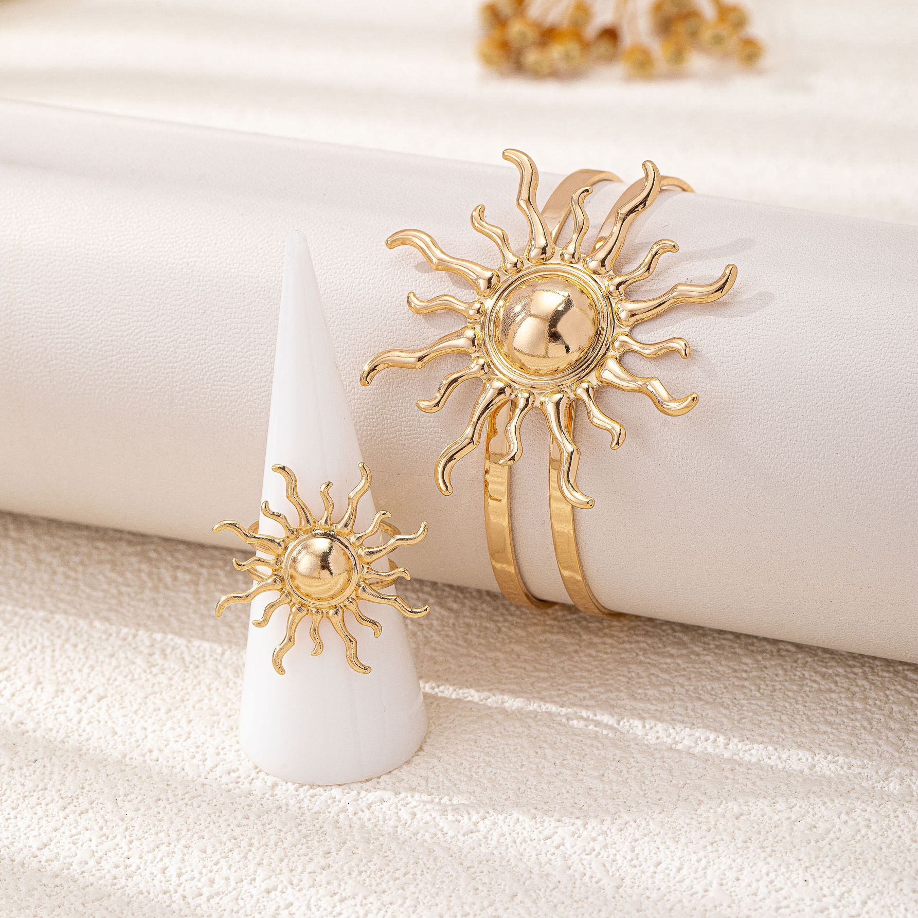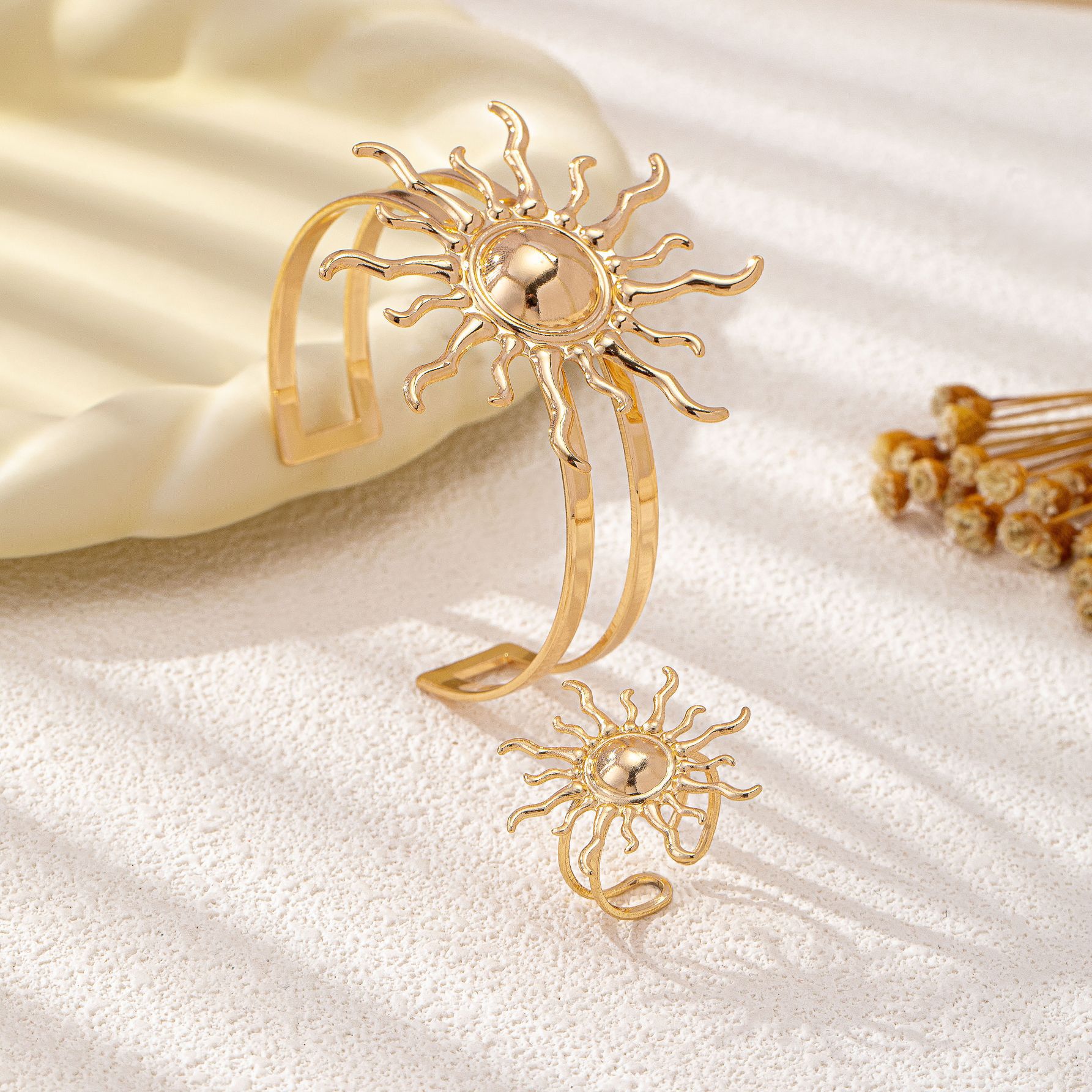 طقم نسائي ذهبي على شكل شمس
