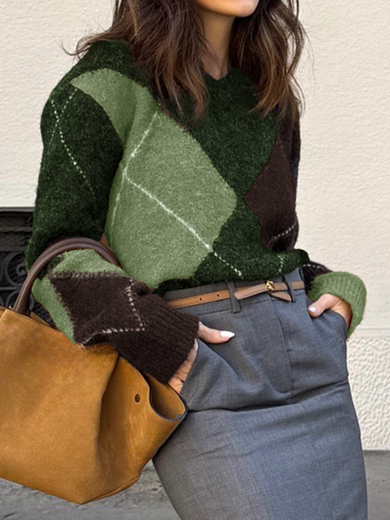 بلوزه نسائيه صوفية طويلة الأكمام محبوكة بألوان متداخلة