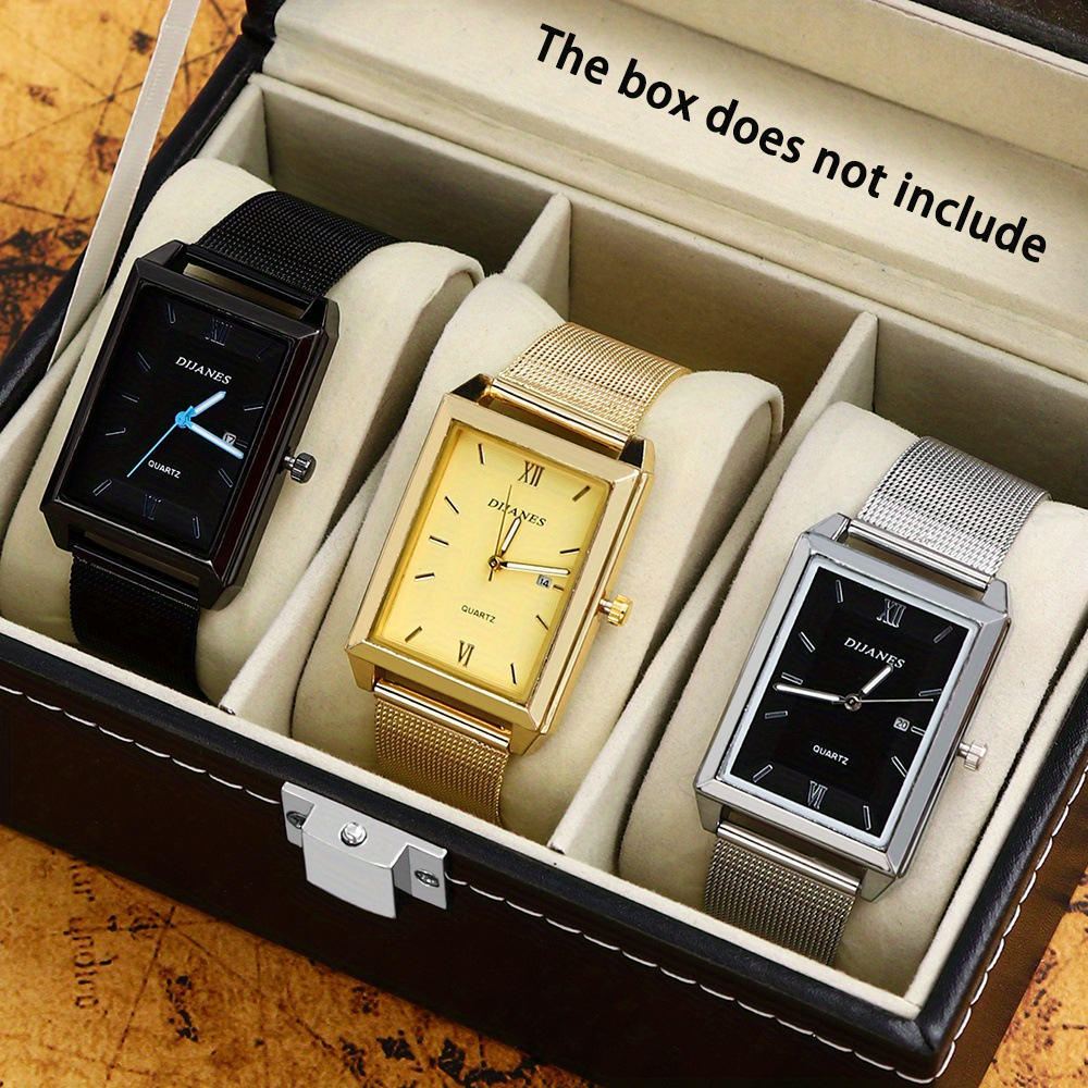 طقم ساعات رجاليه من ثلاث قطع من الفولاذ المقاوم للصدأ