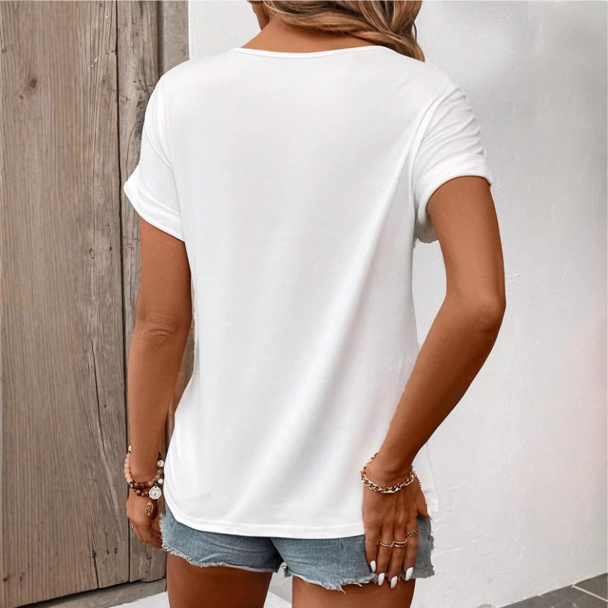 تيشيرت نسائي صيفي مزين بالدانتيل