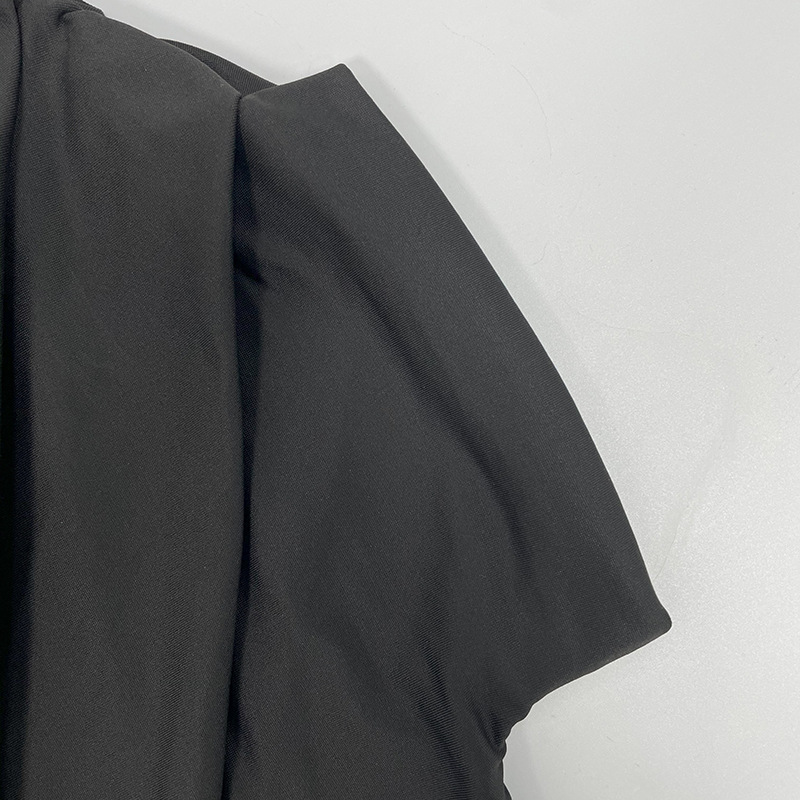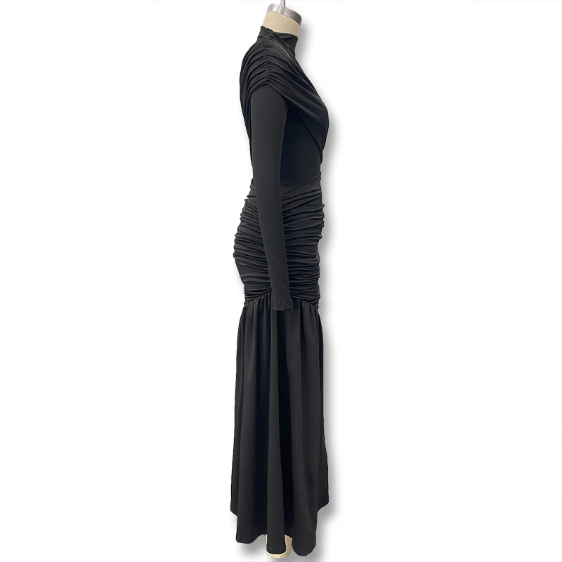 فستان نسائي قصير لون موحد بياقه عاليه