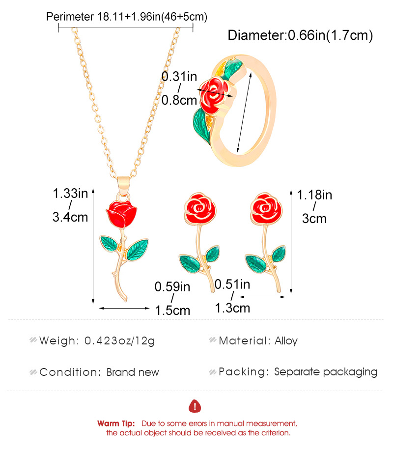 طقم اكسسوار نسائي بنمط وردة من 3 قطع