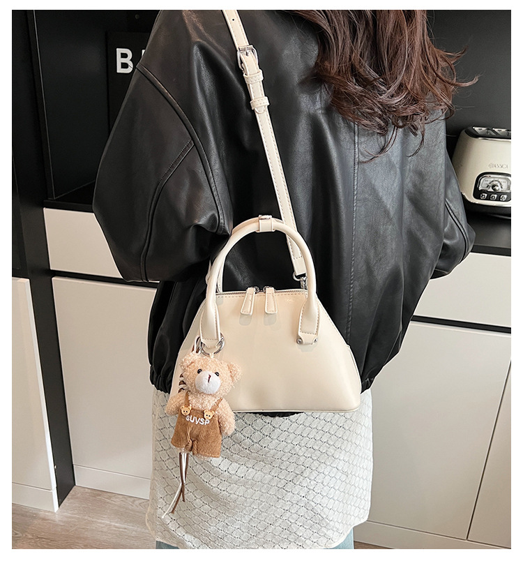 شنطة يد نسائي ساده مع قلادة دبدوب