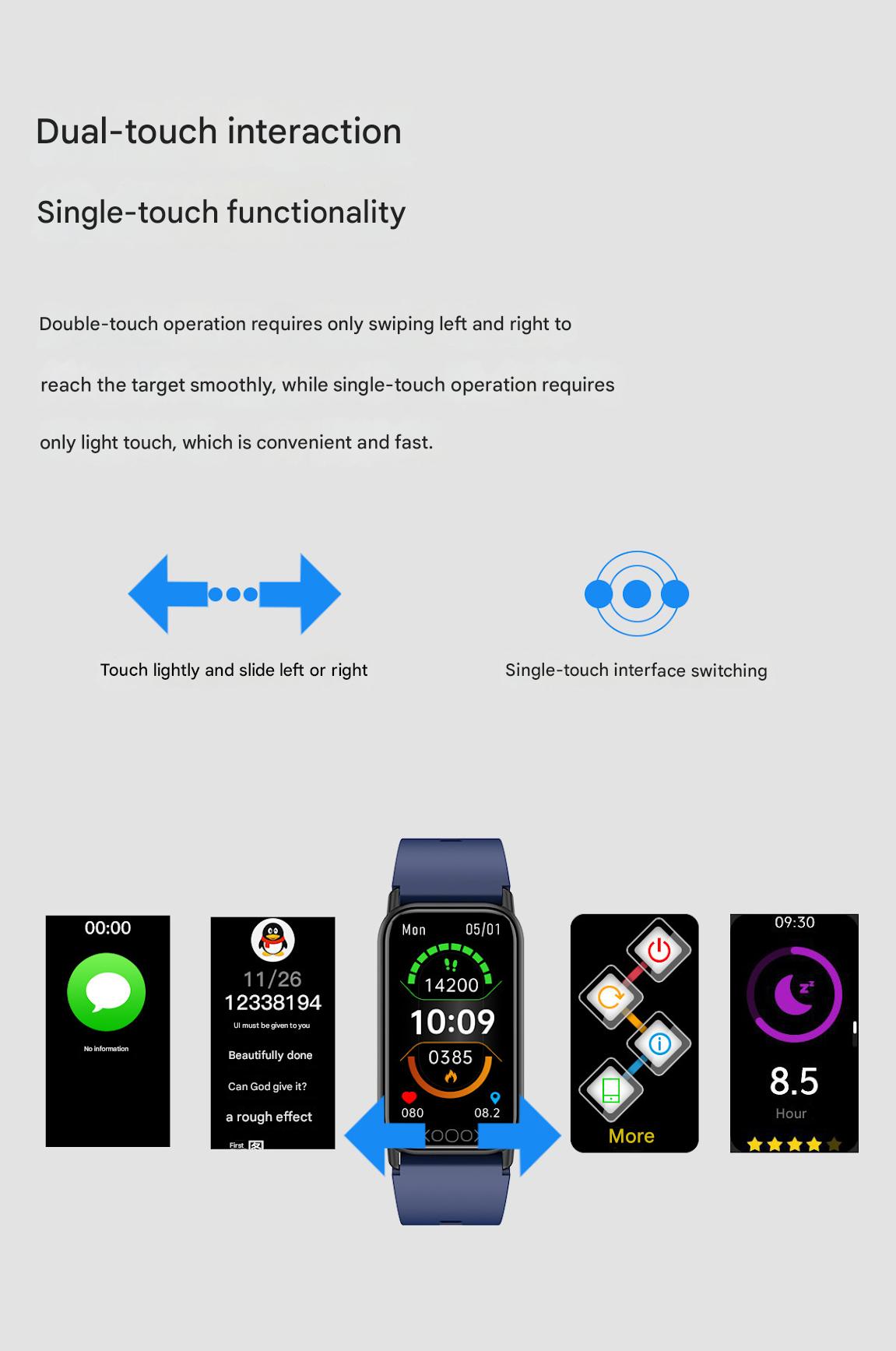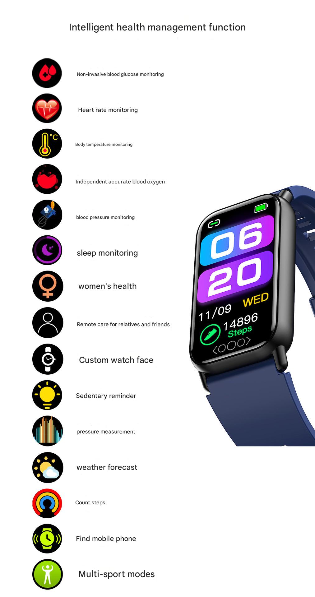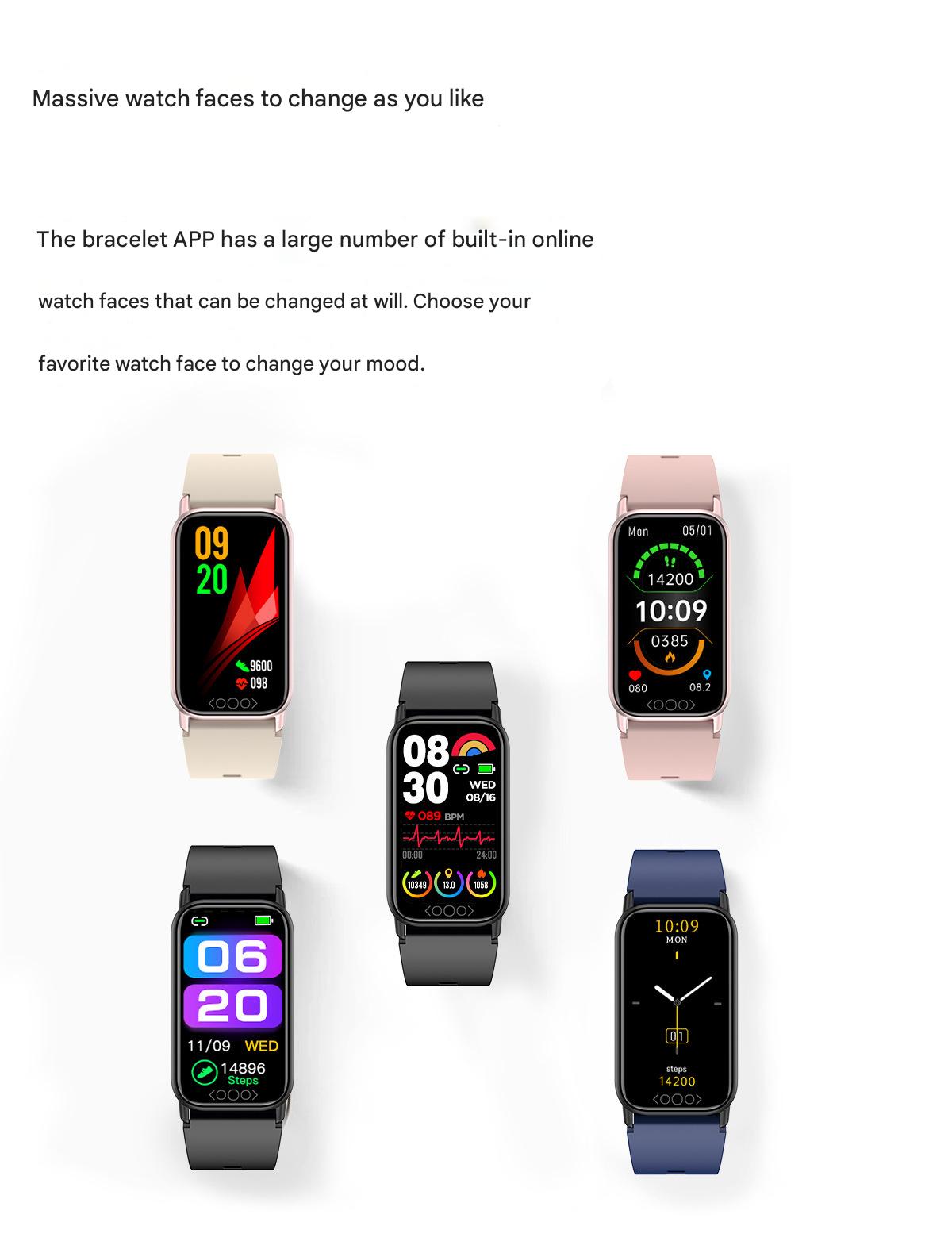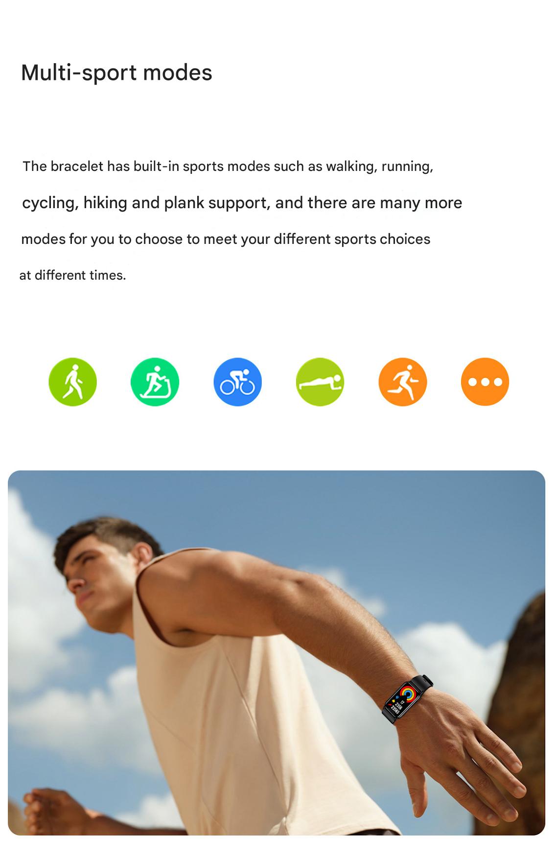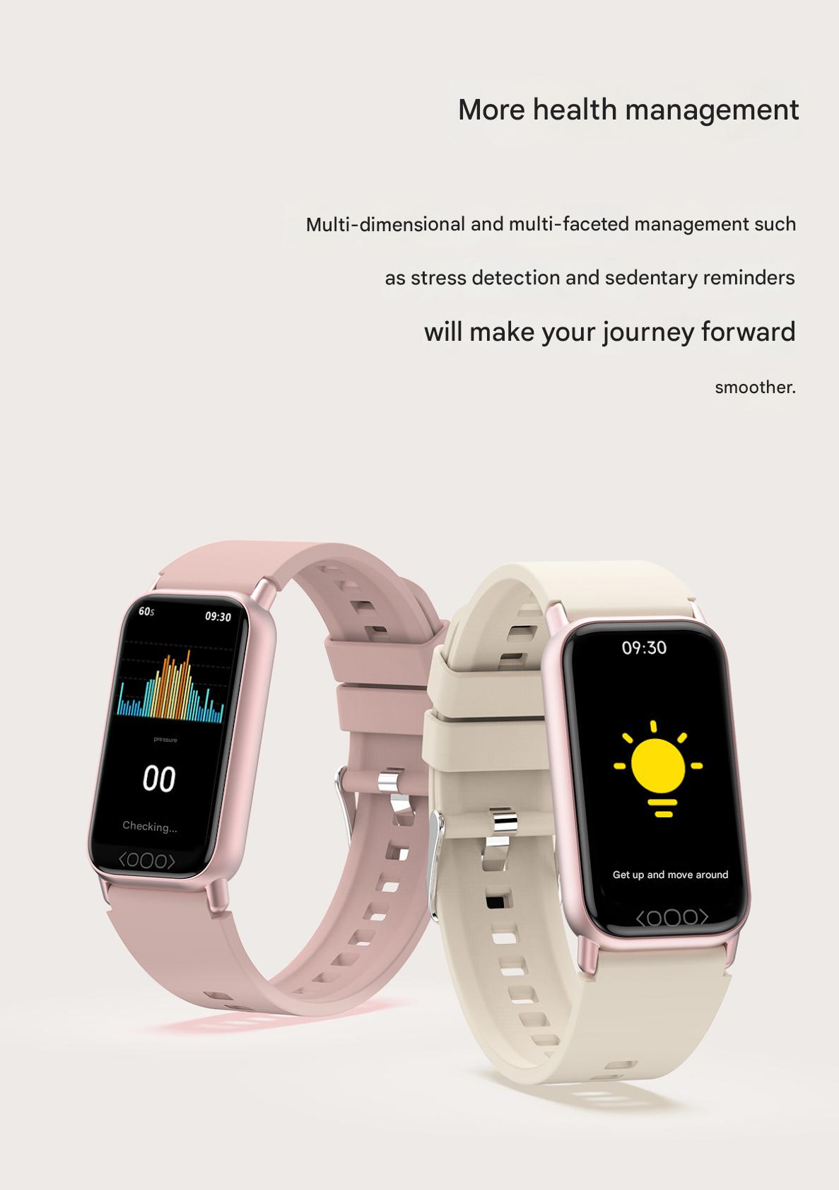 وظائف صحية متقدمة: عداد خطوات، مراقبة معدل ضربات القلب، قياس ضغط الدم، قياس الأكسجين في الدم، مراقبة النوم، قياس درجة الحرارة.