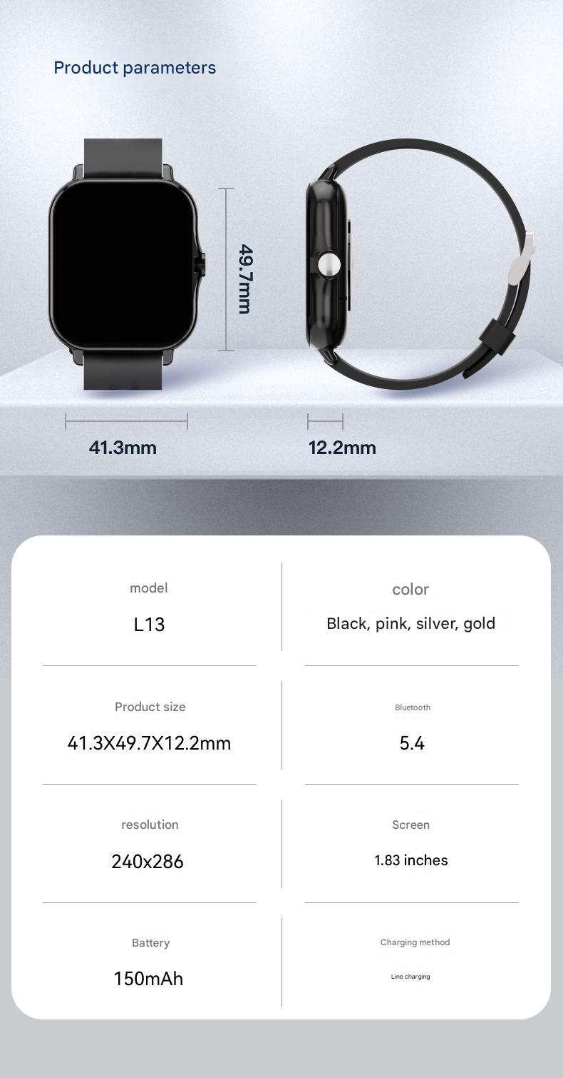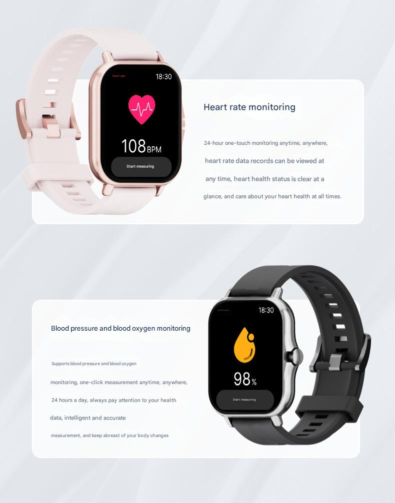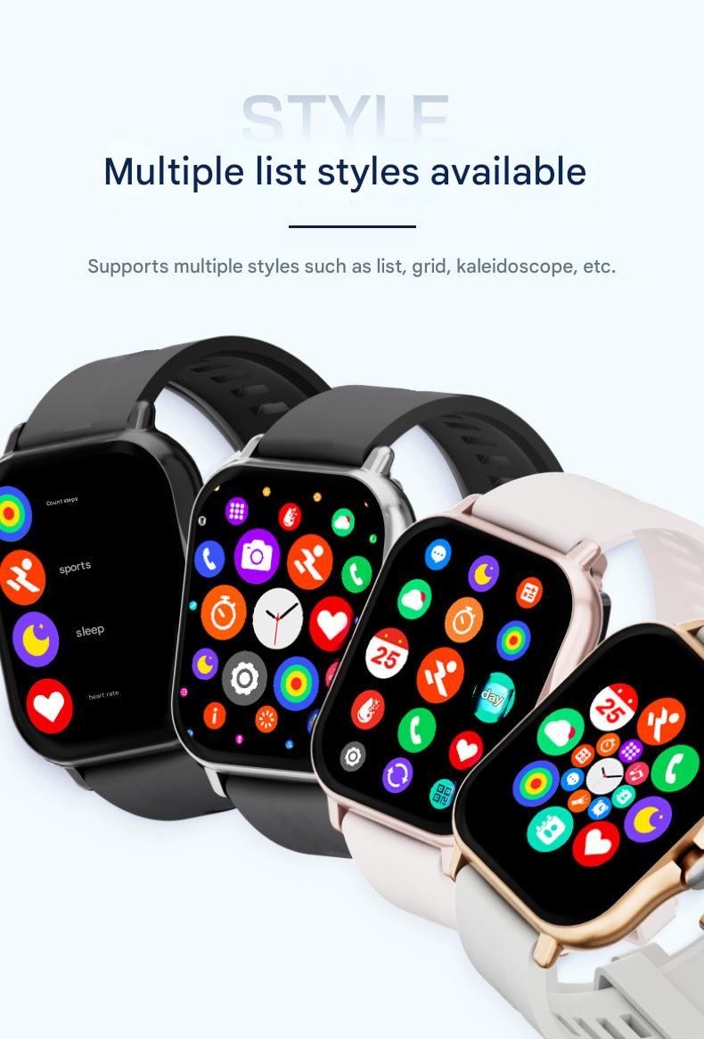 الشاشة: TFT عالية الوضوح، تصميم مربع بقطر 28 مم وأقل.