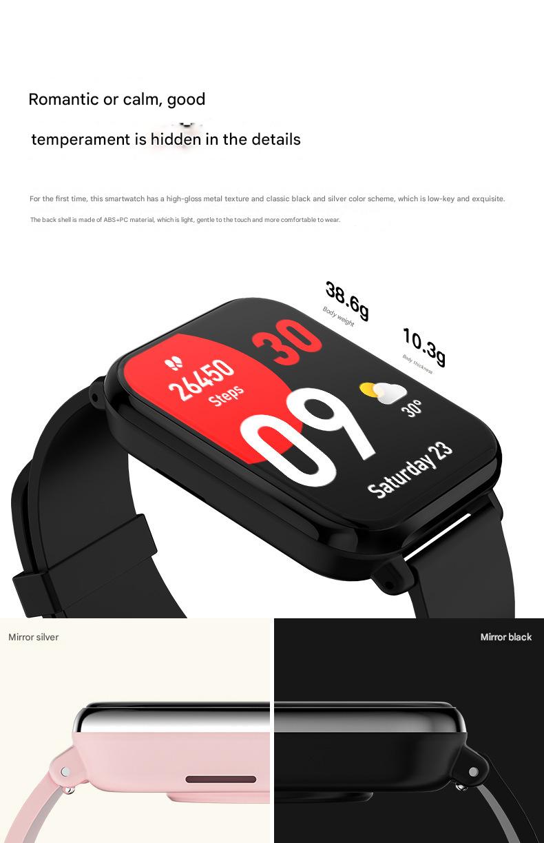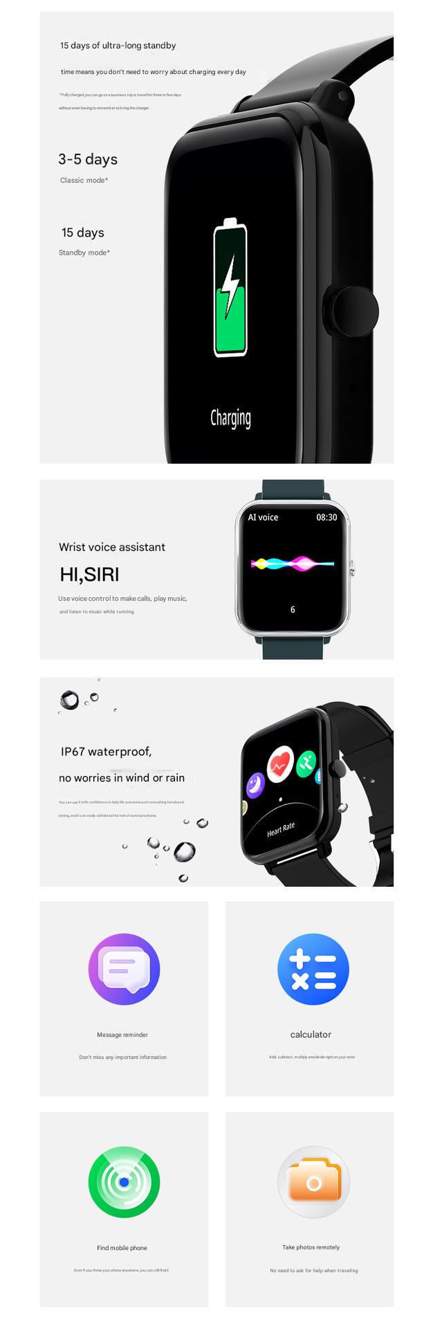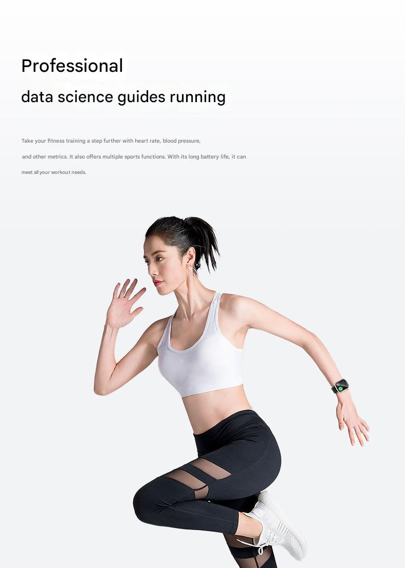 الخامة: سوار سيليكون رياضي خفيف الوزن، وزن الساعة 39 جرام.