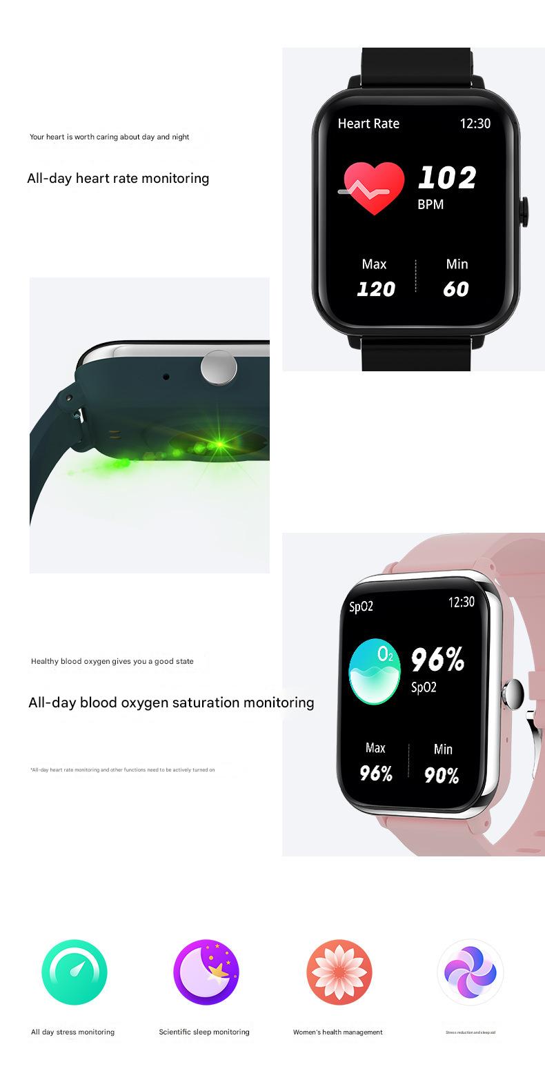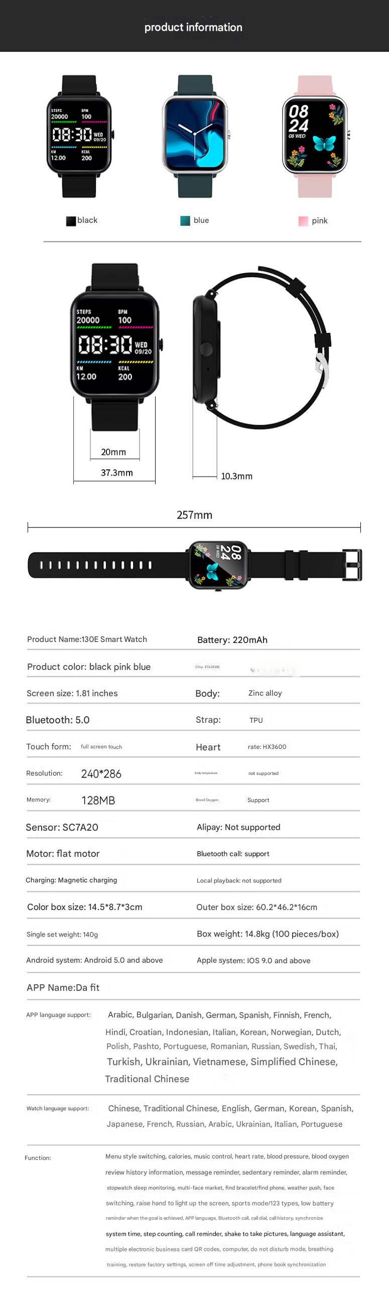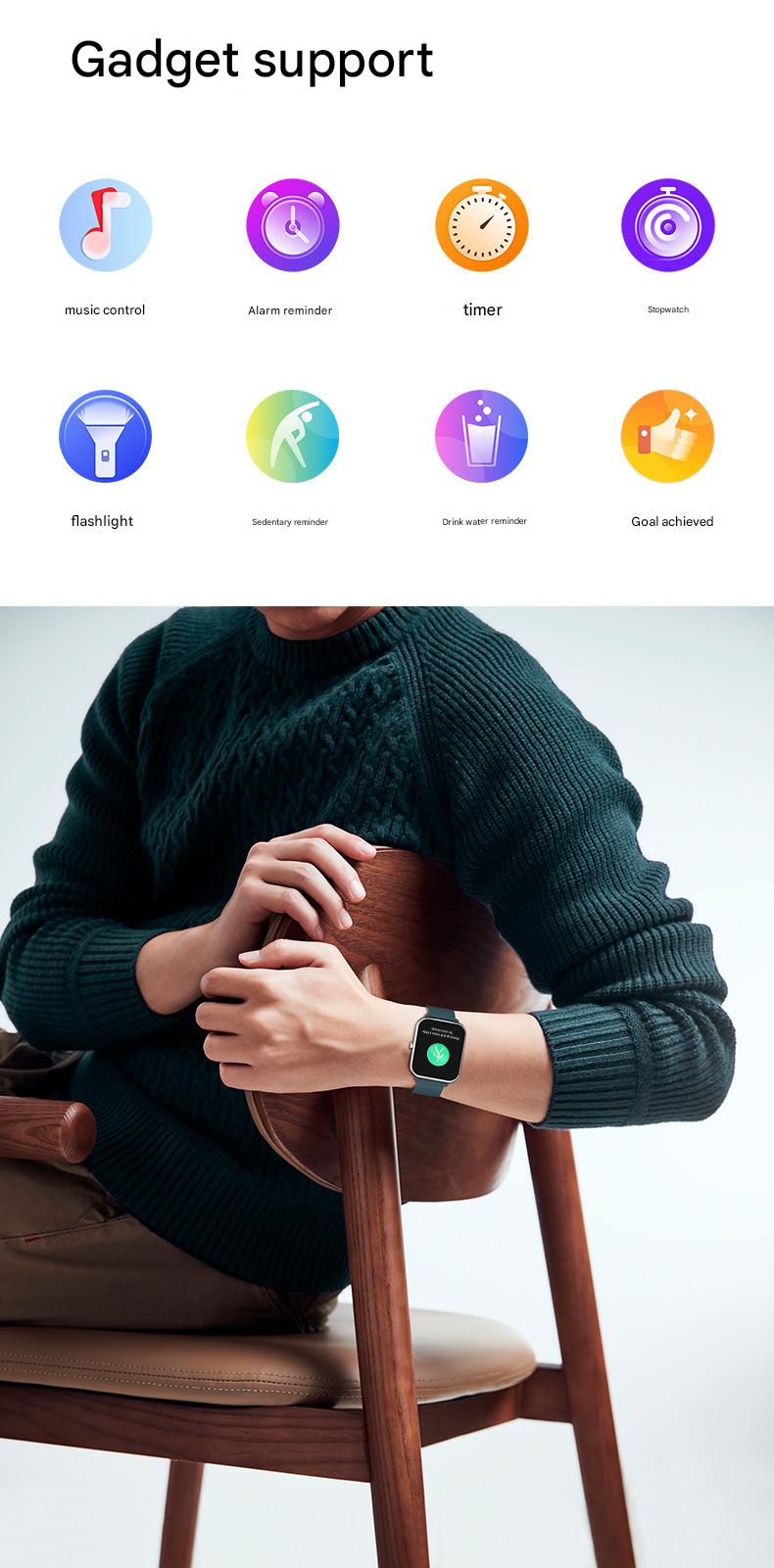 الخامة: سوار سيليكون رياضي خفيف الوزن، وزن الساعة 39 جرام.