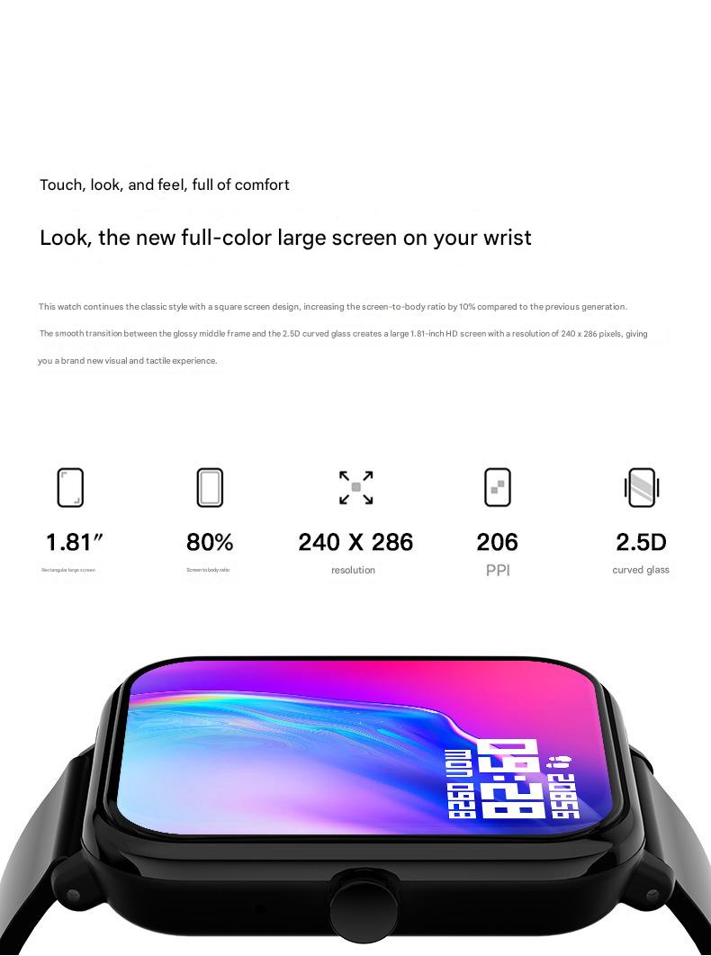 الشاشة: TFT عالية الوضوح بتصميم مربع.