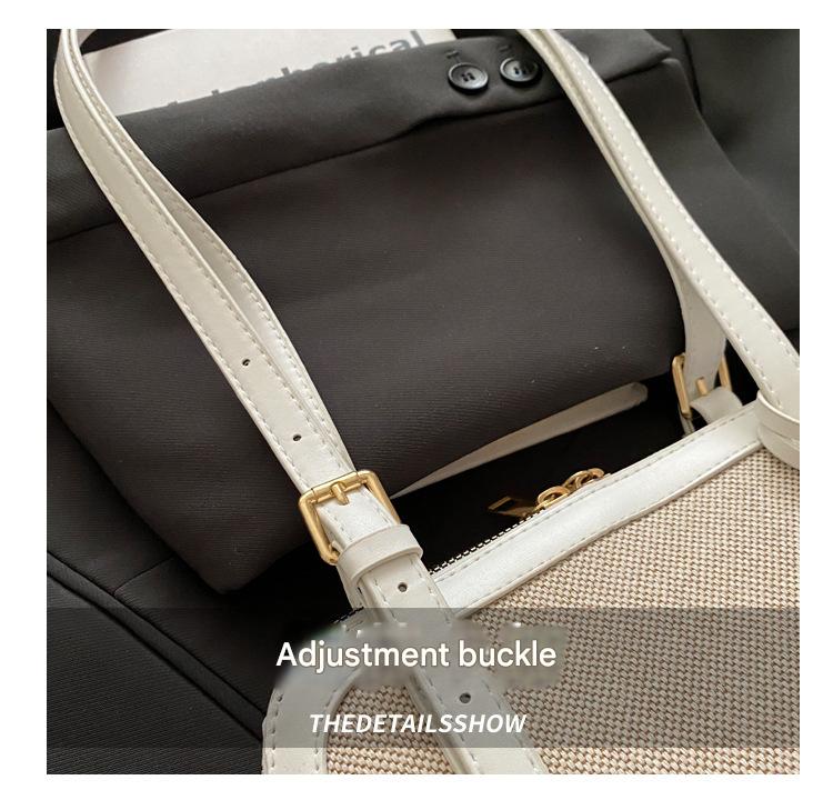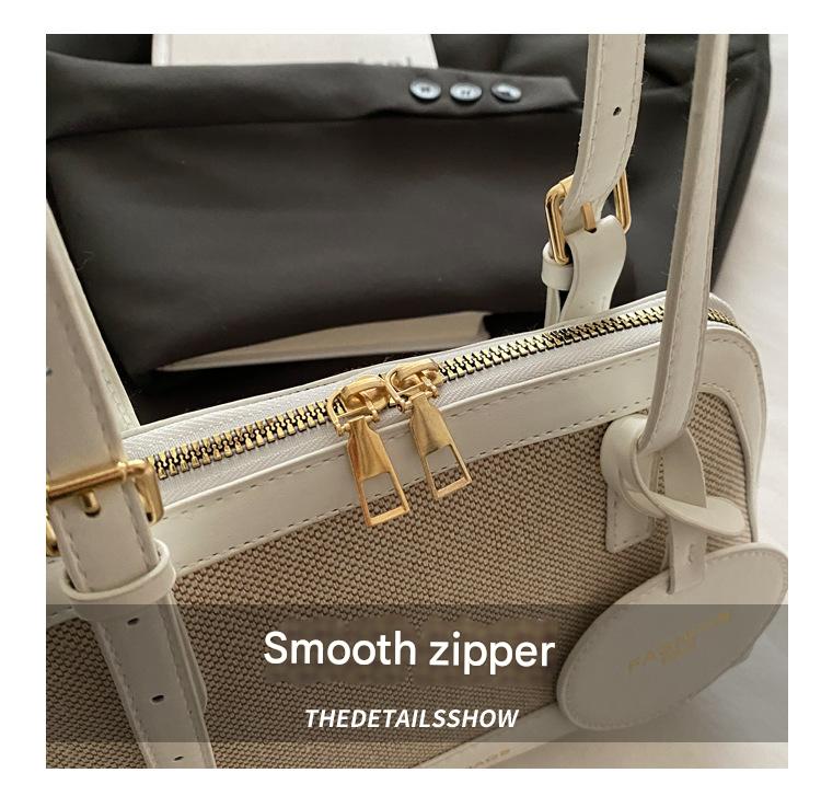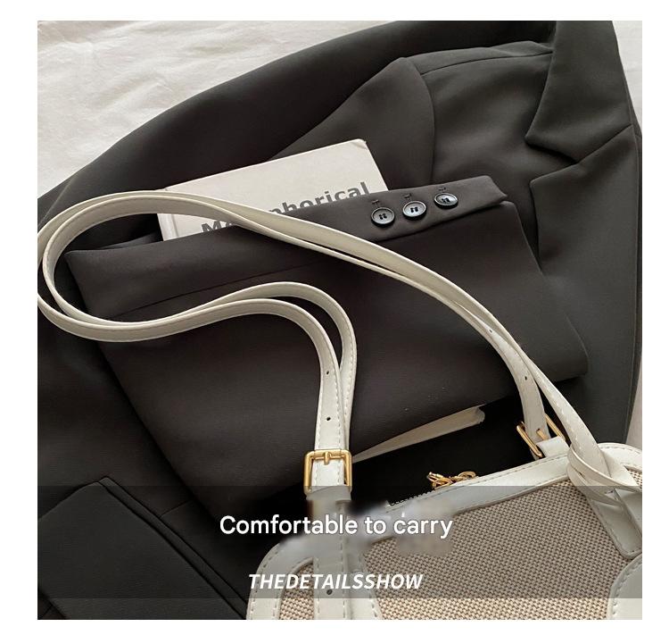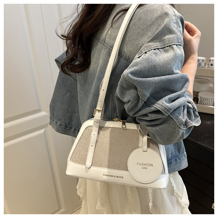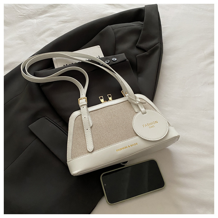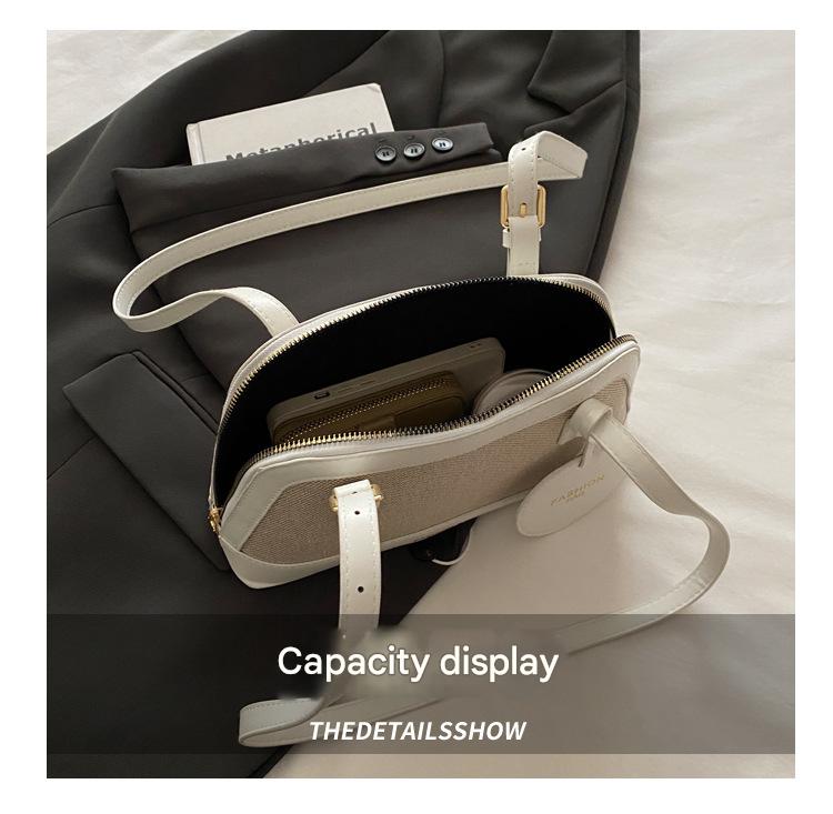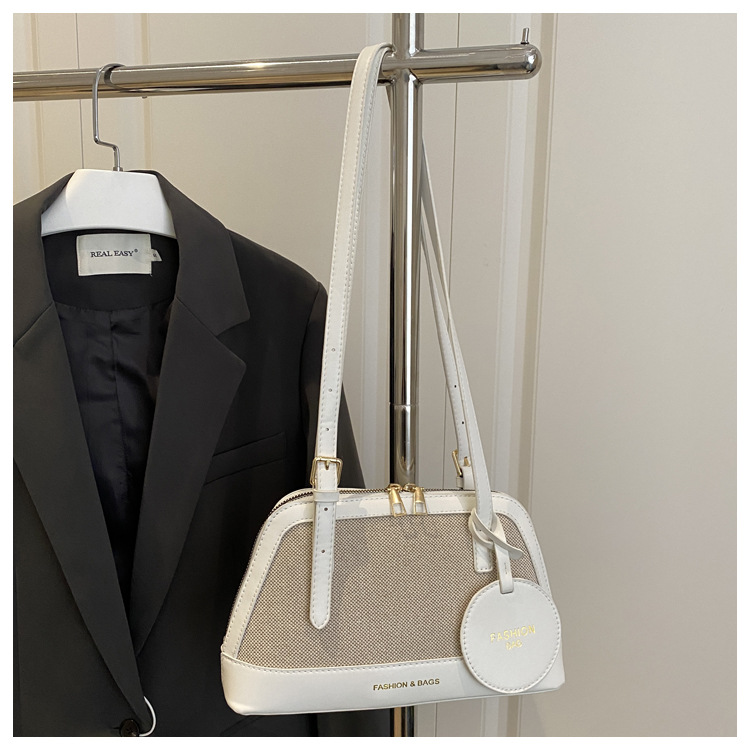حقيبة كتف نسائية بمزيج من القماش والجلد