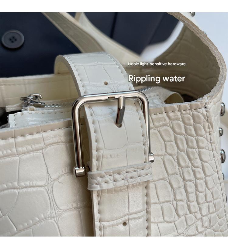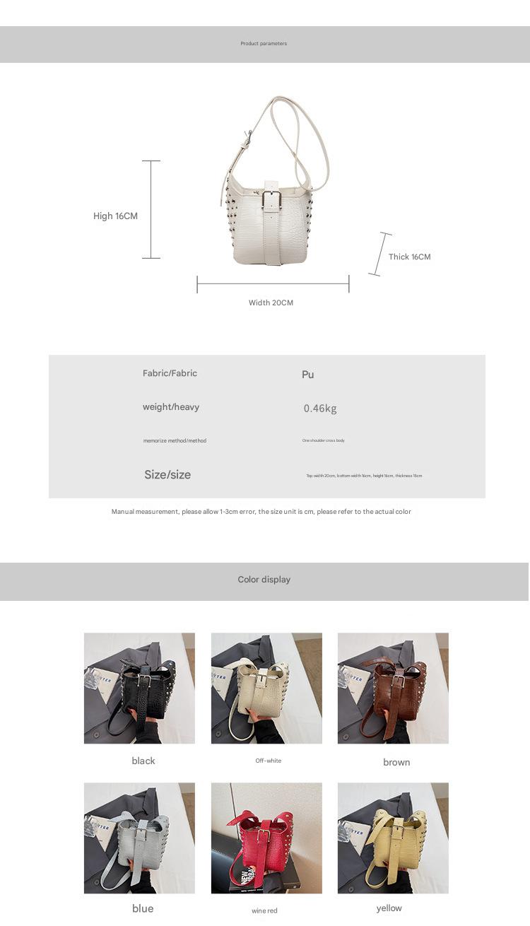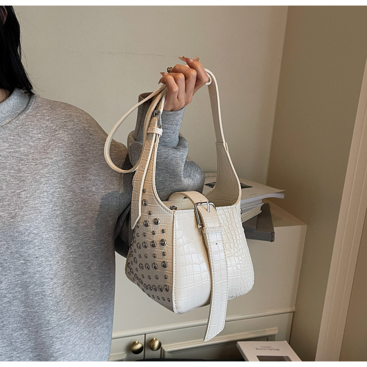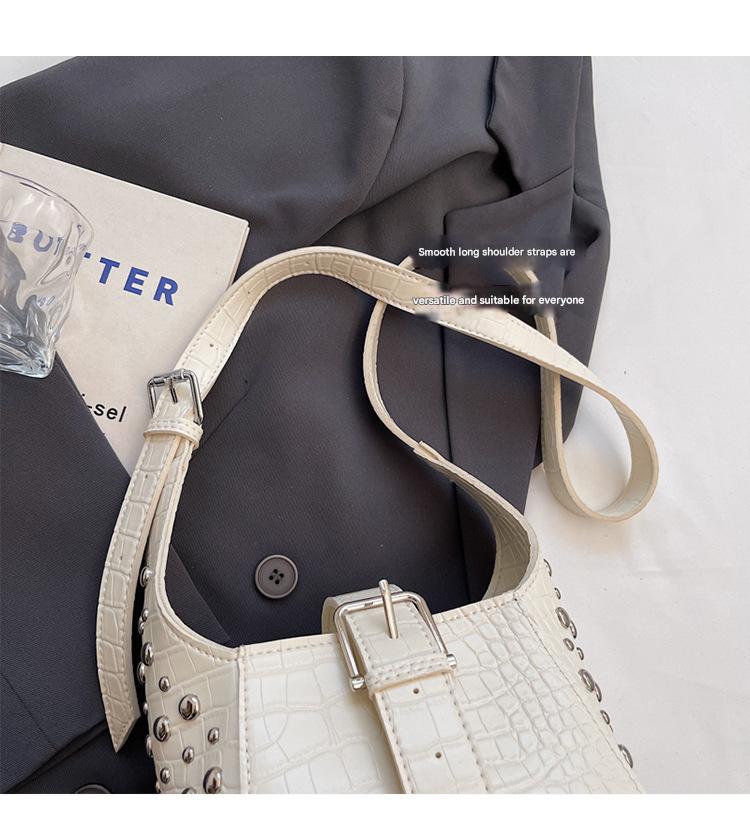 حقيبة نسائية مع حزام على شكل مشبك مرصعة بمسامير فضية