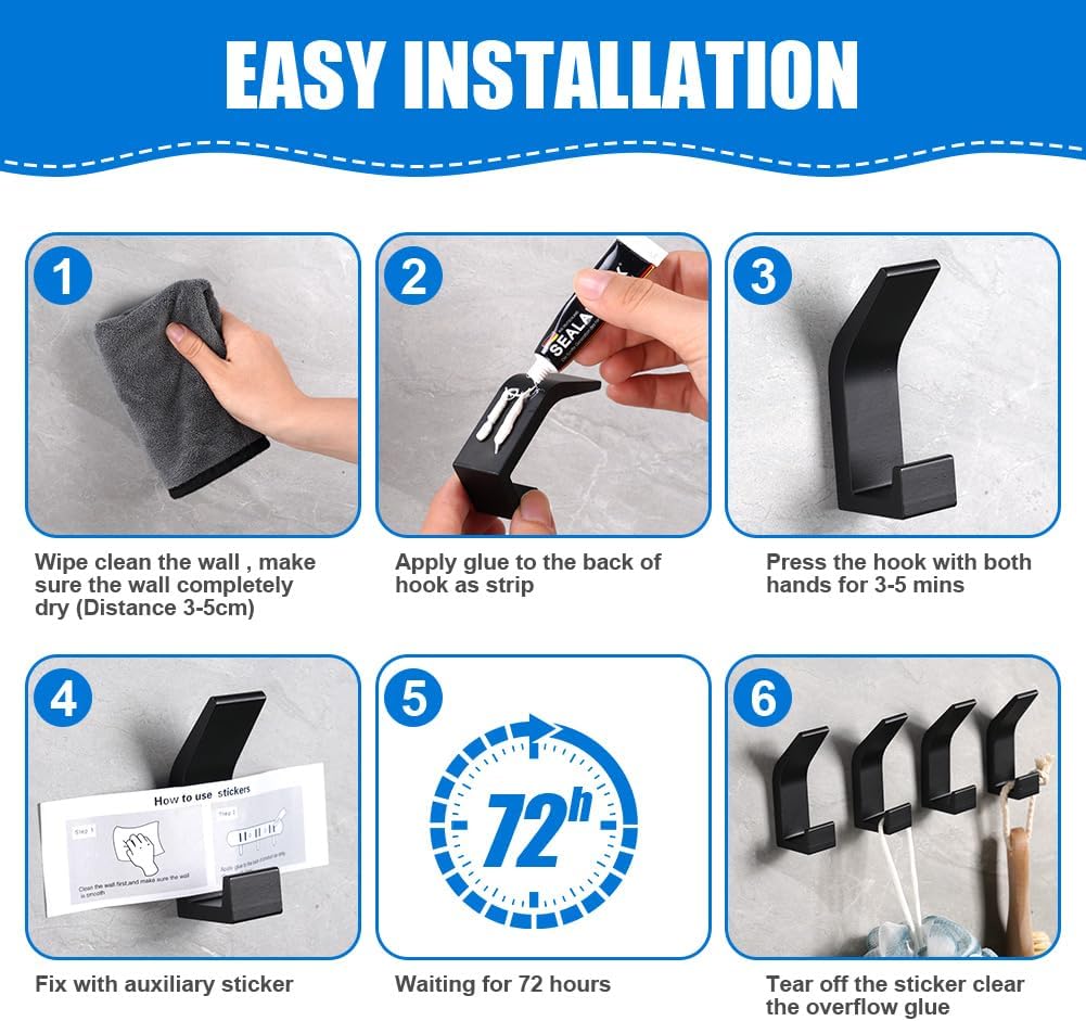 خطافات جدارية لاصقة وقوية مع غراء فائق اللصق متعدد الإستخدامات