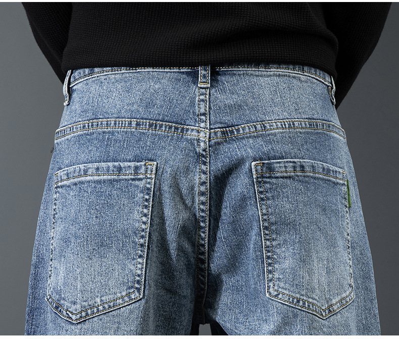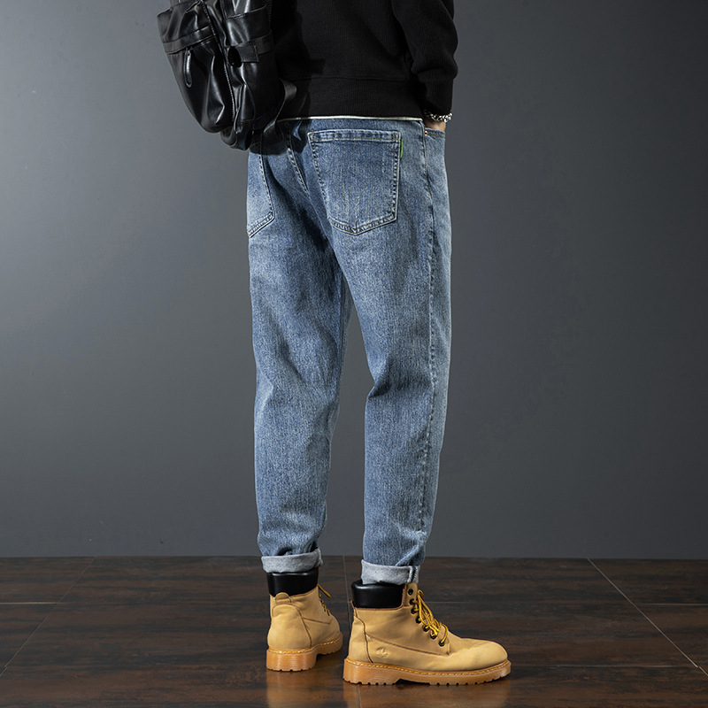 بنطال جينز قطني بلون أزرق كلاسكي للرجال