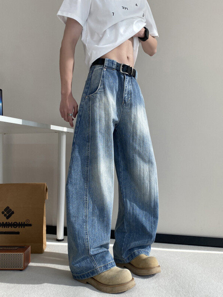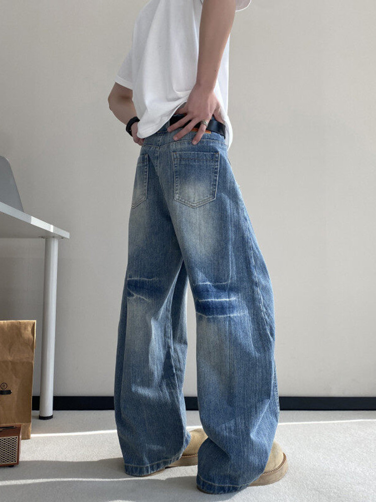 بنطال جينز فضفاض وانيق أزرق اللون للرجال