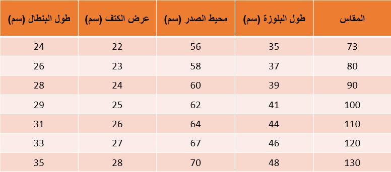 المقاس | 73 سم، 80 سم، 90 سم، 100 سم، 110 سم، 120 سم، 130 سم |
