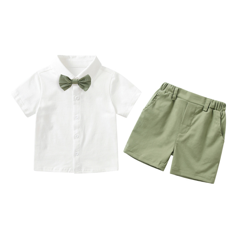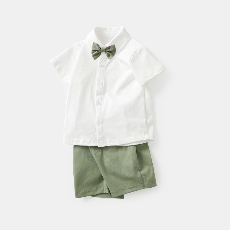 طقم للأولاد بأكمام قصيرة على الطراز الكوري مكون من قطعتين