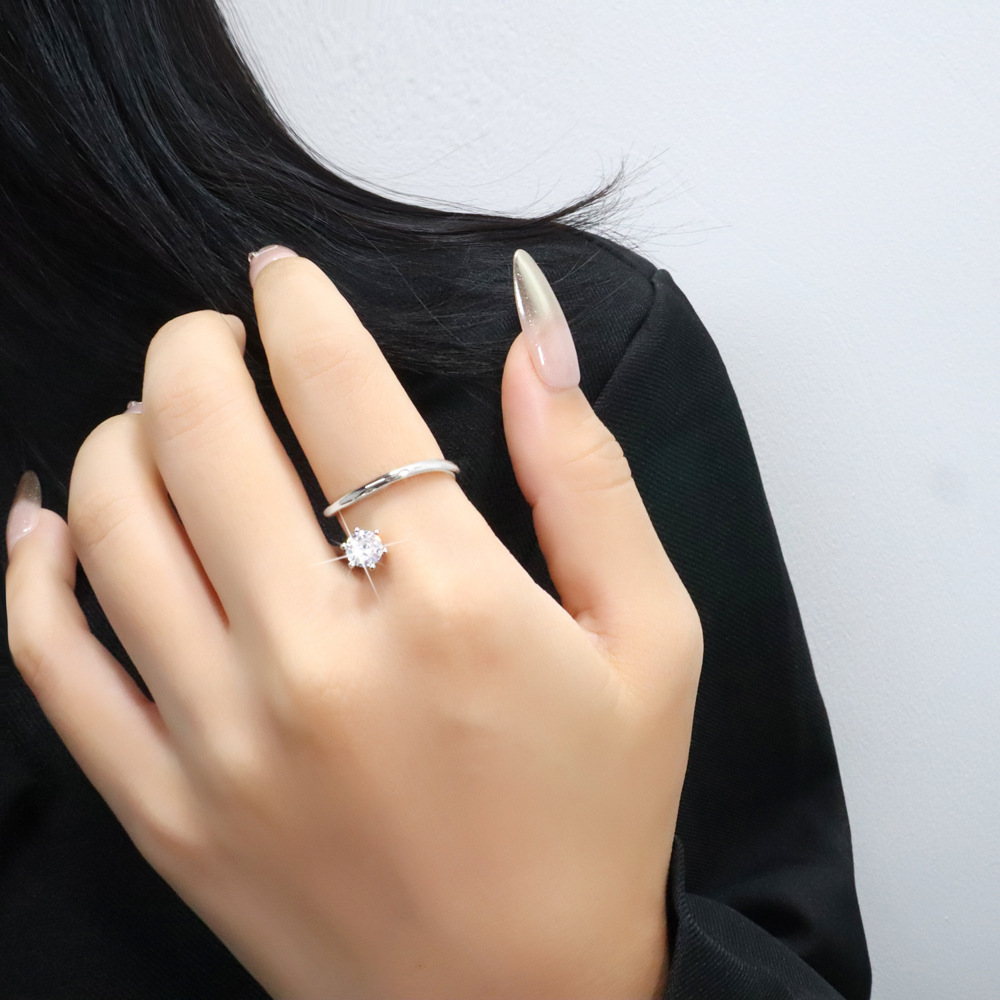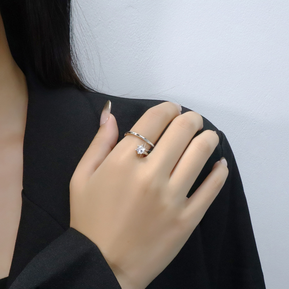 خاتم ألماس دائري لامع من قيراط بسيط فاخر معلق من الزركون