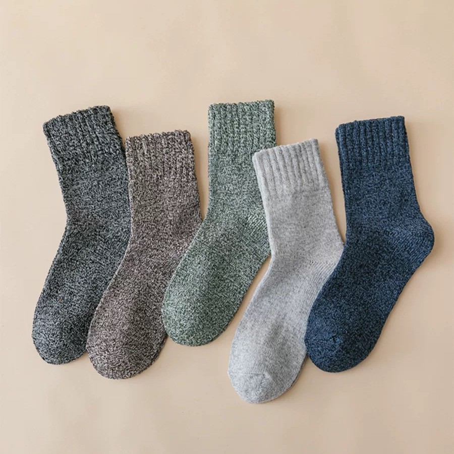 جوارب رجالية خريفية وشتوية من الصوف بتصميم عتيق 5قطع