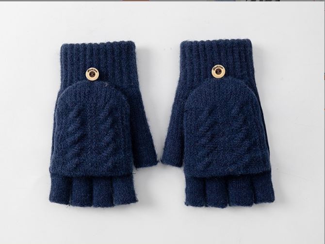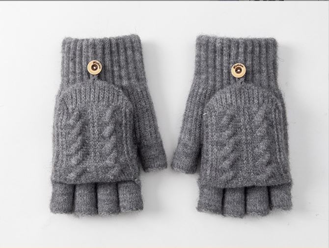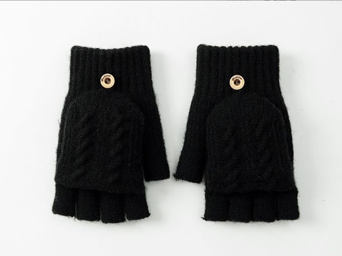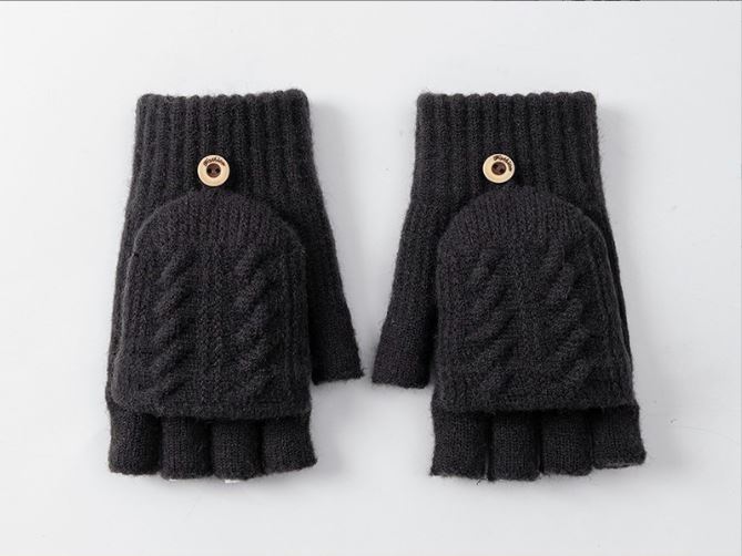 قفازات دافئة نصف أصابع للرجال الصوف المقاوم للبرد مع غطاء قلاب